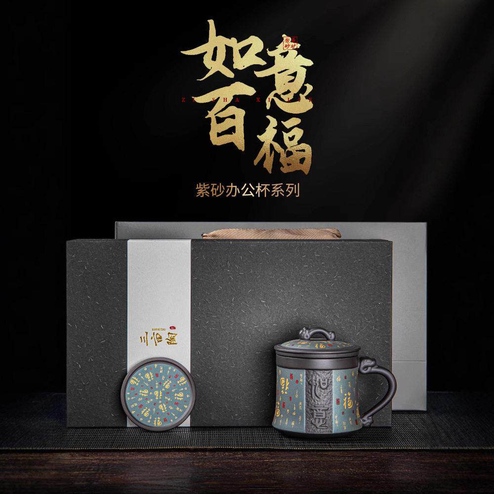 为您提供商品带盖子过滤杯子茶水分离杯礼品礼盒套 三亩陶高档紫砂百福茶杯中式的详细介绍,