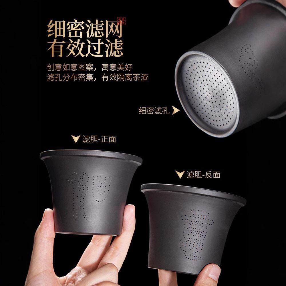 带盖子过滤杯子茶水分离杯礼品礼盒套 三亩陶高档紫砂百福茶杯中式