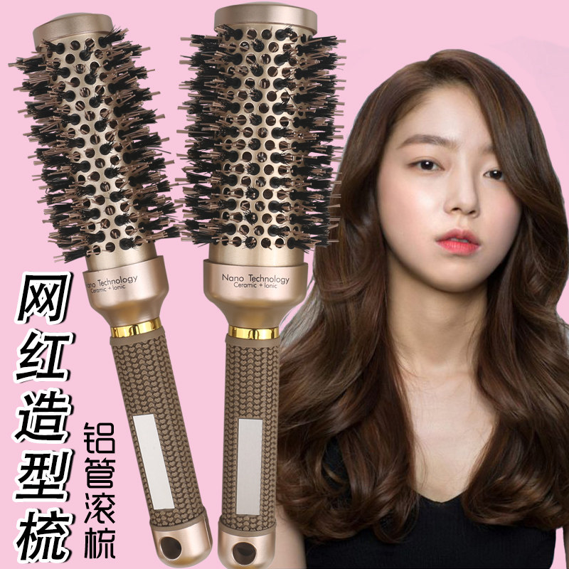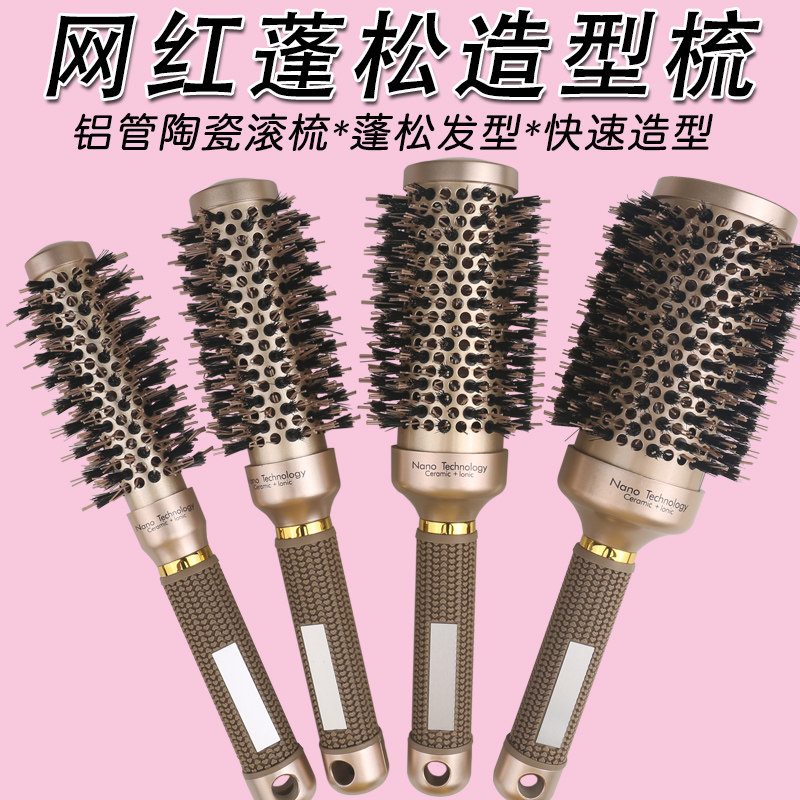 发廊美发滚梳女士空气刘海头发蓬松铝管圆梳子造型卷发梳