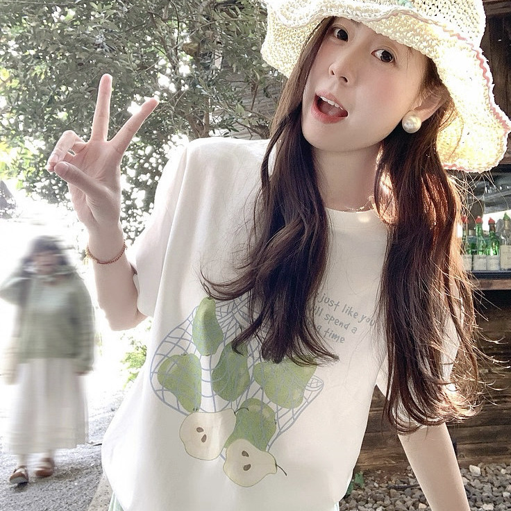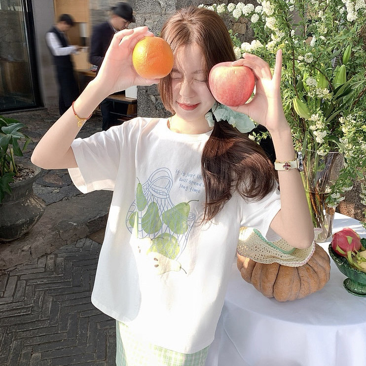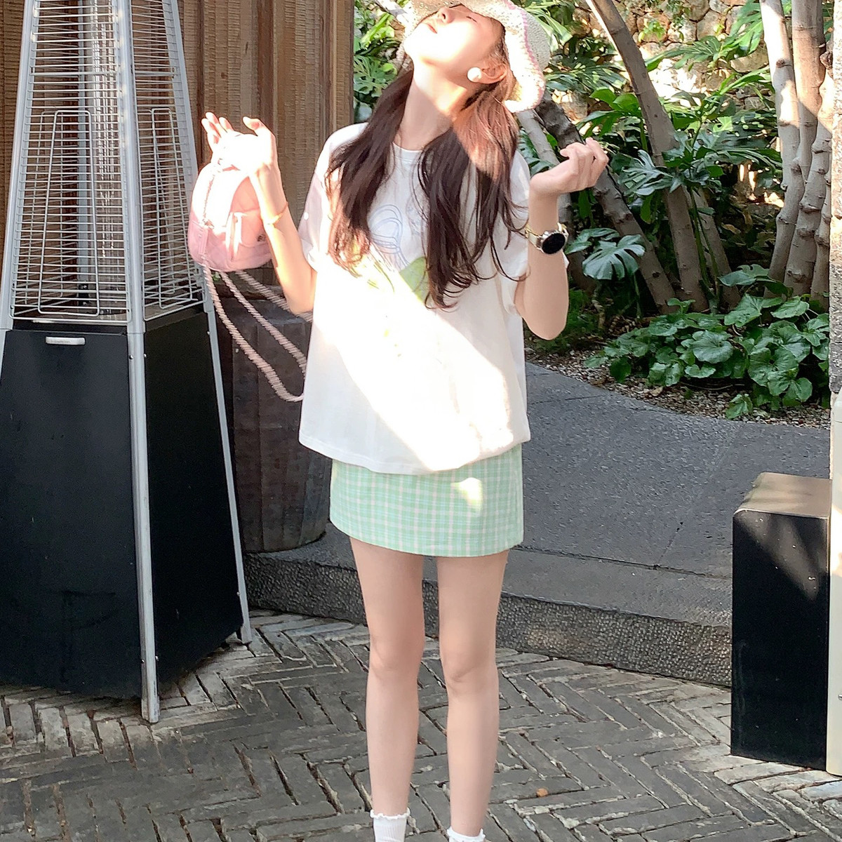 T恤 案印花短袖 伊嘉 9999 两件套 YS6 高腰格子a字半裙套装 Y.JIA由