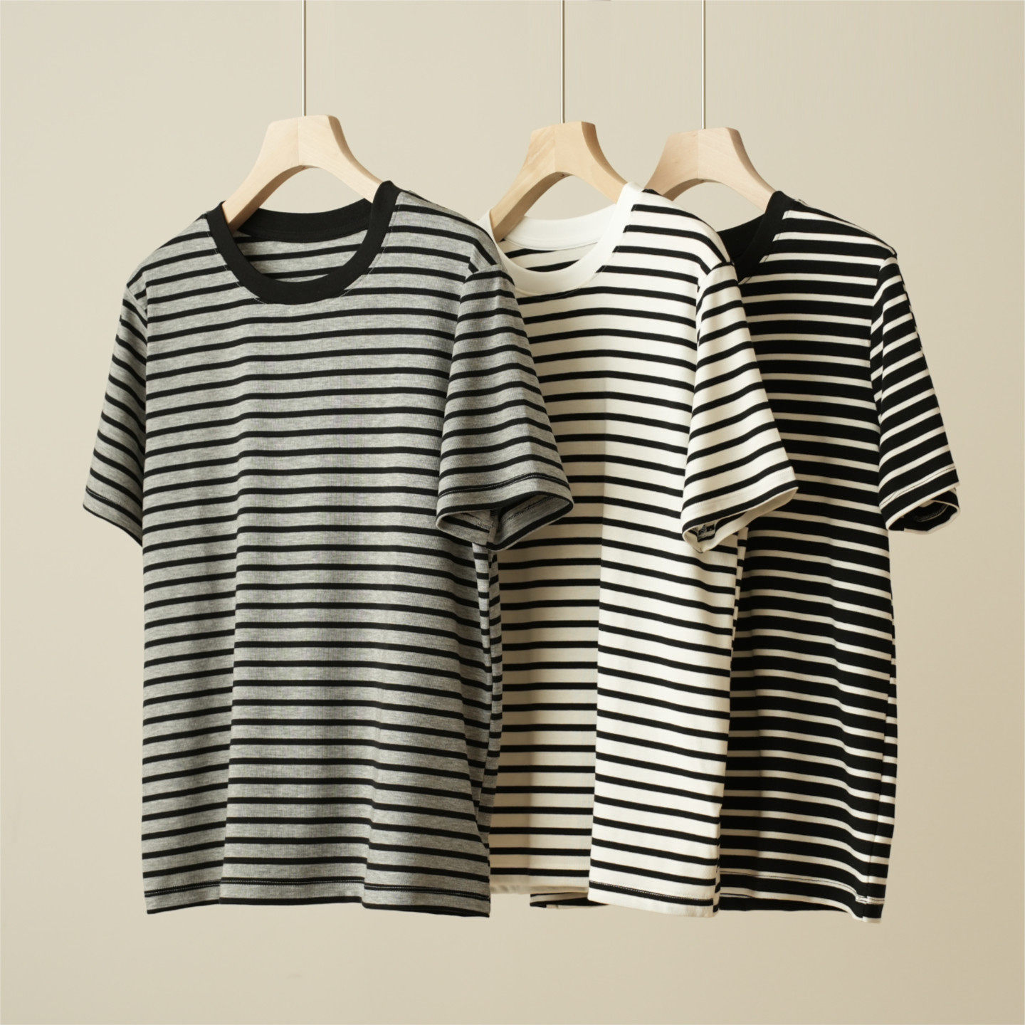 罗纹小圆领T恤衫 经典 女装 春款 休闲百搭 女士天丝条纹短袖