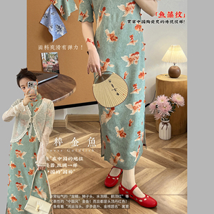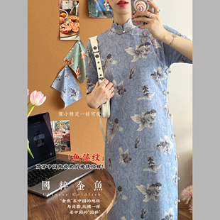 金鱼旗女长款 旗袍裙印花连衣裙 新中式 杨二大梦x白洲插画师合作款