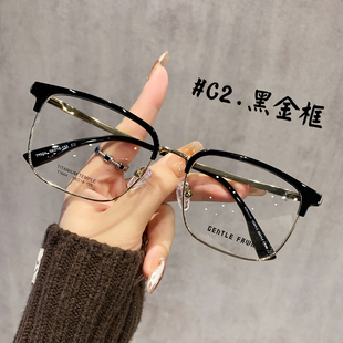 克罗纯钛黑框眼镜半框眼镜近视眼镜高级变色定制成品光学眼镜