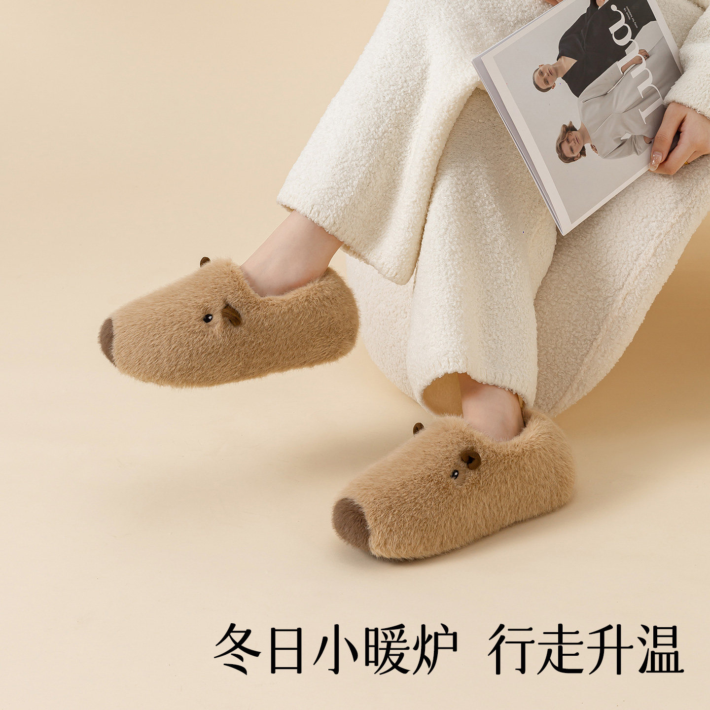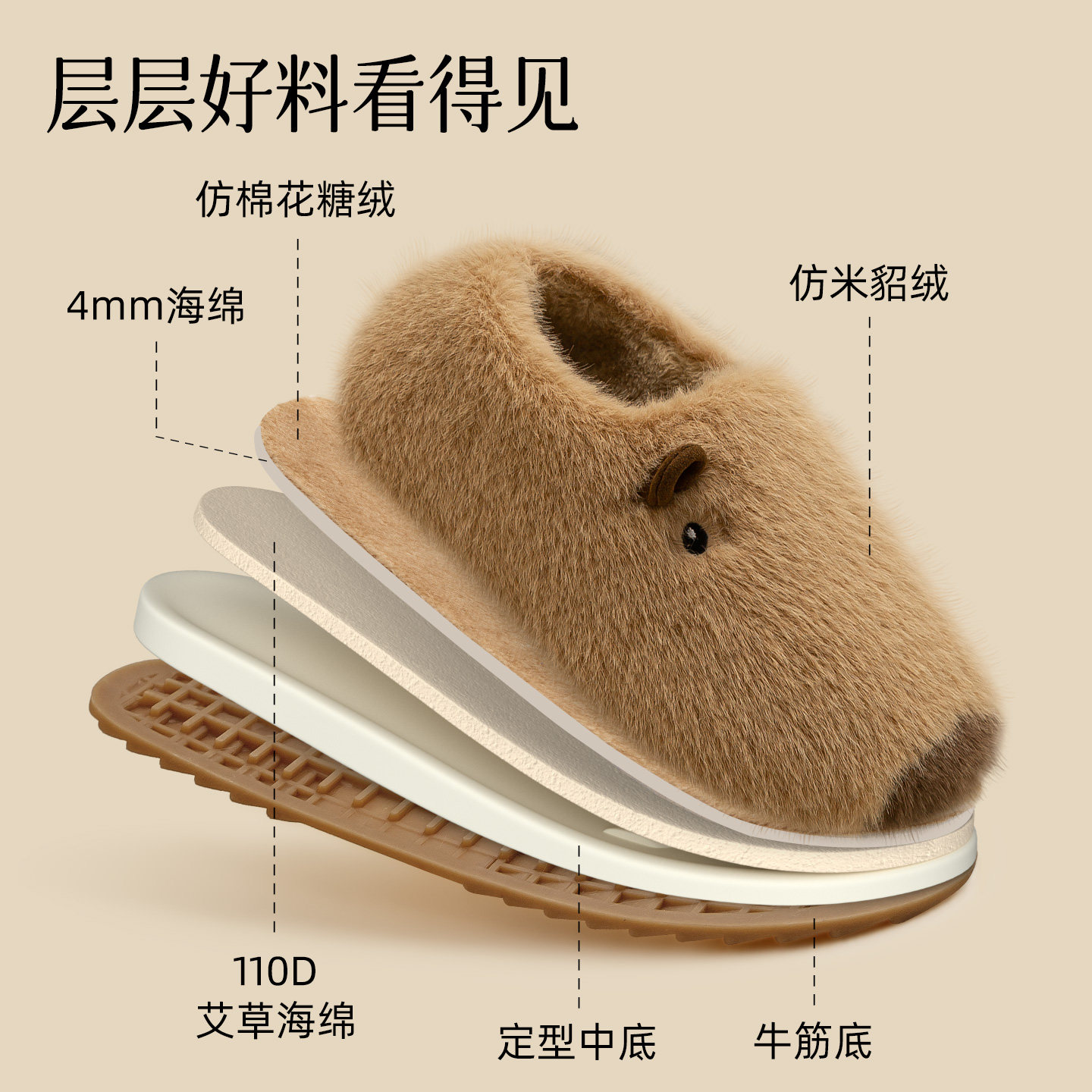 远港卡皮巴拉毛绒棉鞋 冬季 室内居家保暖包跟毛毛棉拖鞋 女2026新款由