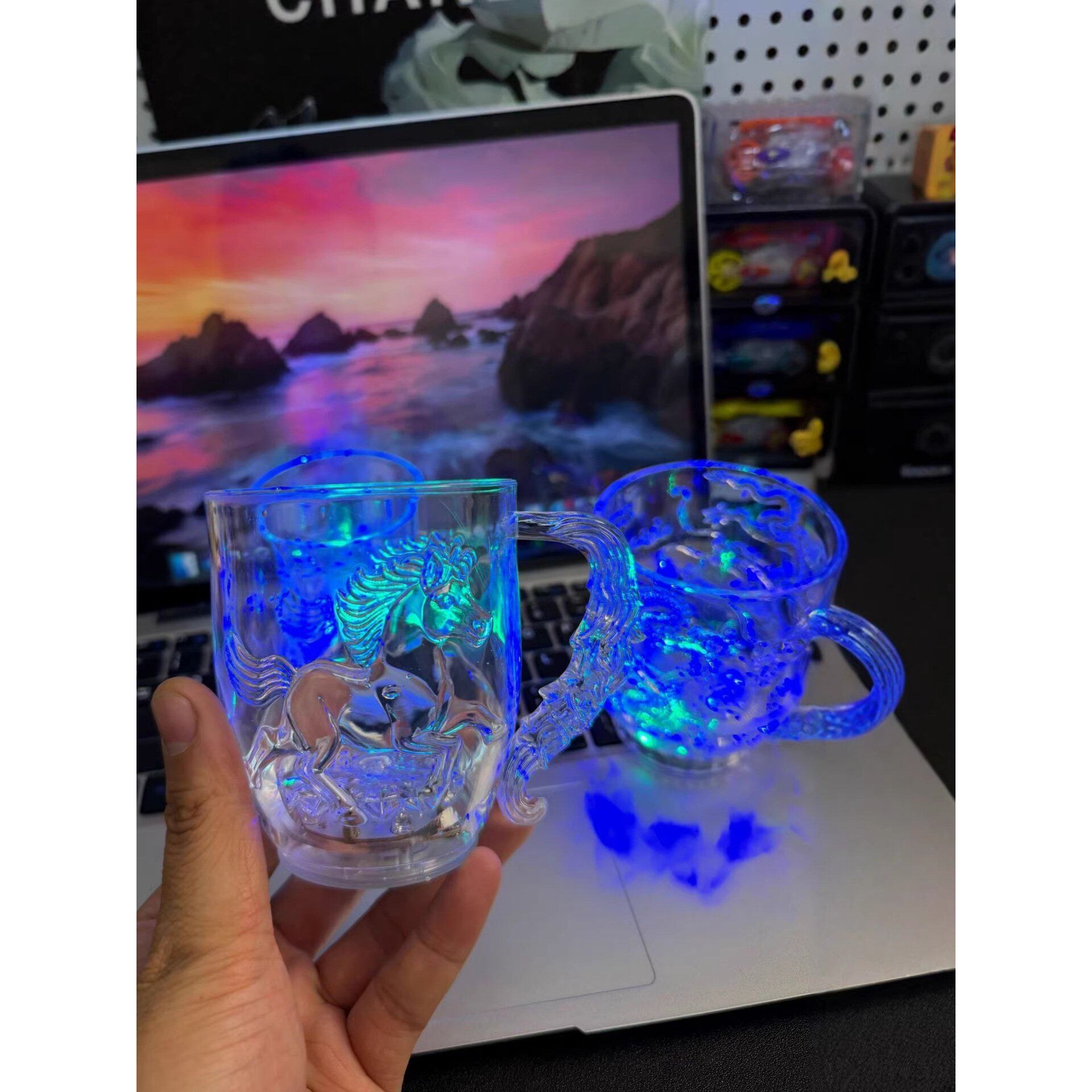 七彩发光马年水杯搞怪加水就亮LED闪光杯塑料创意杯子生日礼物