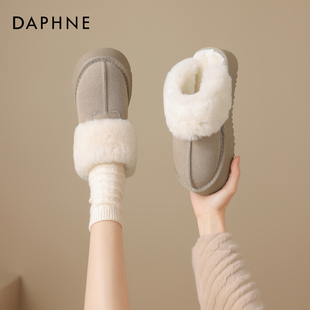 保暖毛毛鞋 达芙妮厚底雪地靴女款 加绒加厚棉拖鞋 女鞋 2026新款 冬季