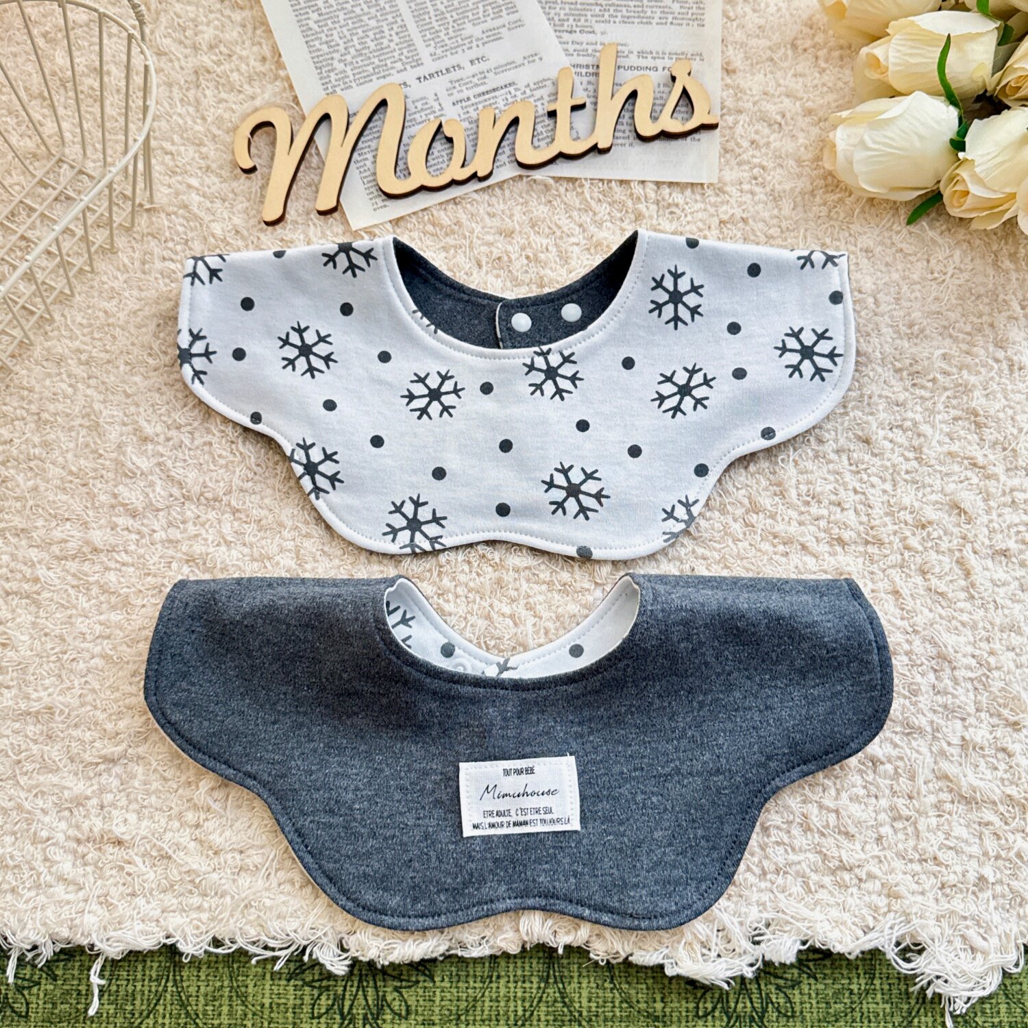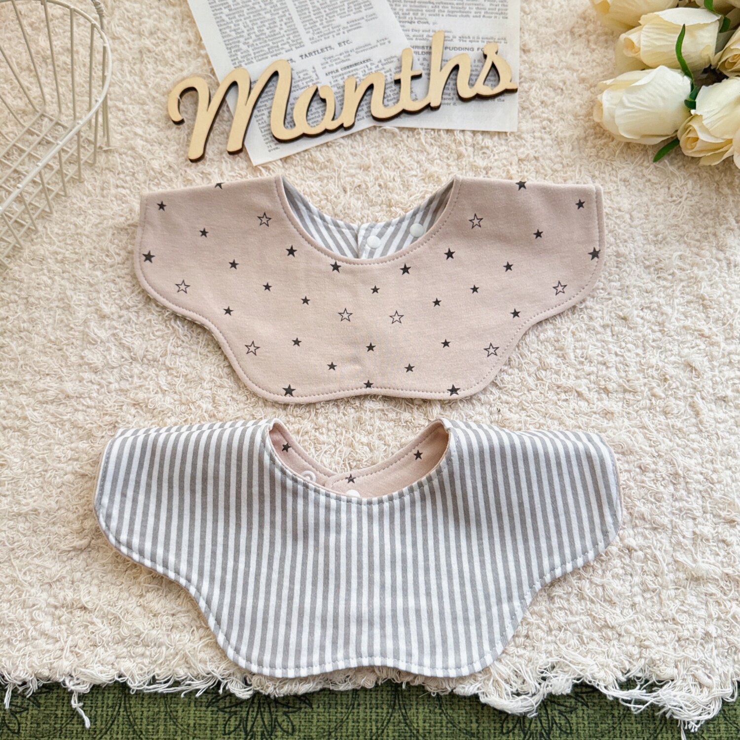 2岁宝宝围兜 ins风婴儿a类纯棉小围嘴花瓣双面吸水口水巾新生儿0