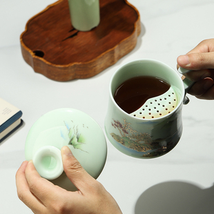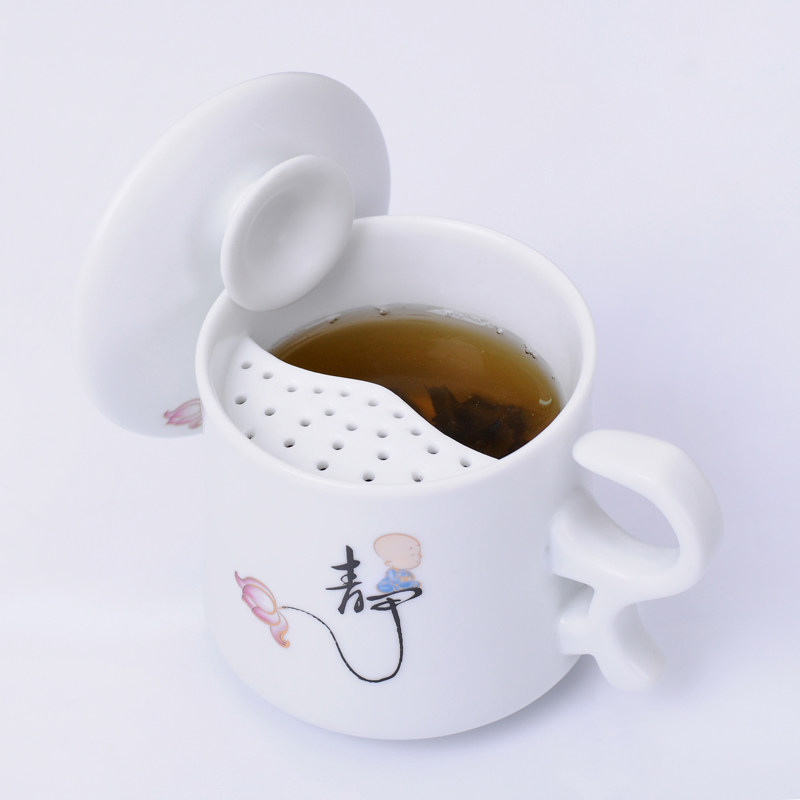 马克茶水杯陶瓷带盖月牙过滤个人办公会议节日活动礼品杯定制LOGO由