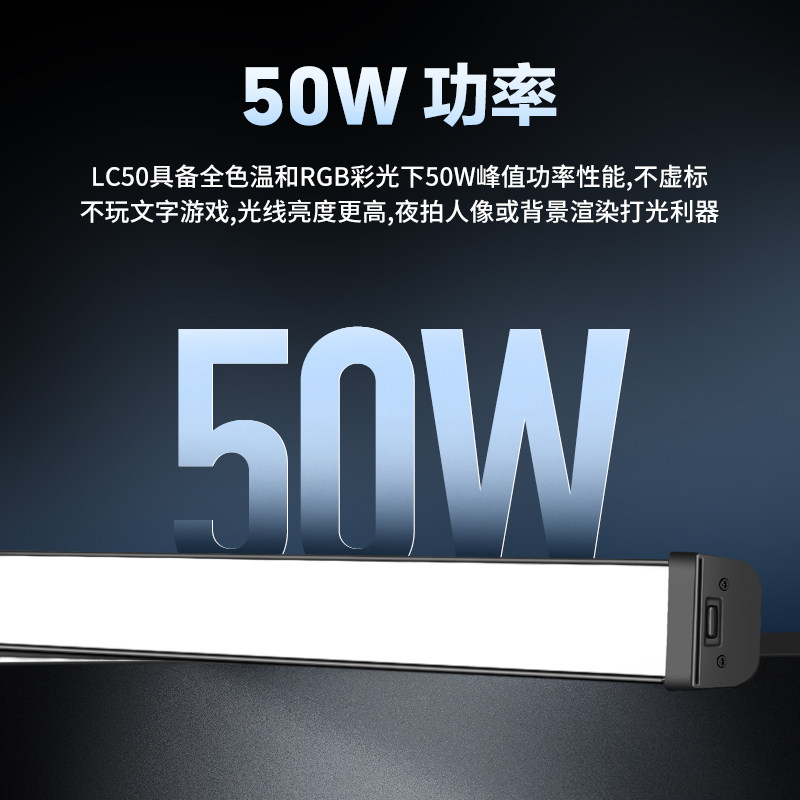 轻装 RGB全彩专业摄影视频打光灯轻便户外拍照夜景人像LED常亮柔光灯氛围灯 时代50W手持补光灯棒灯便携式