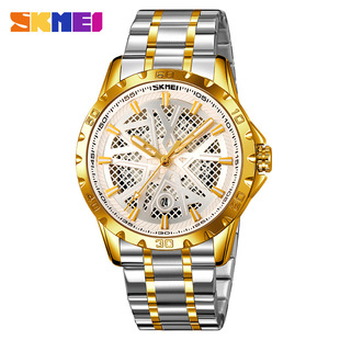 SKMEI时刻美休闲手表男士 防水简约炫酷日期夜光钢带腕表镂空 时尚