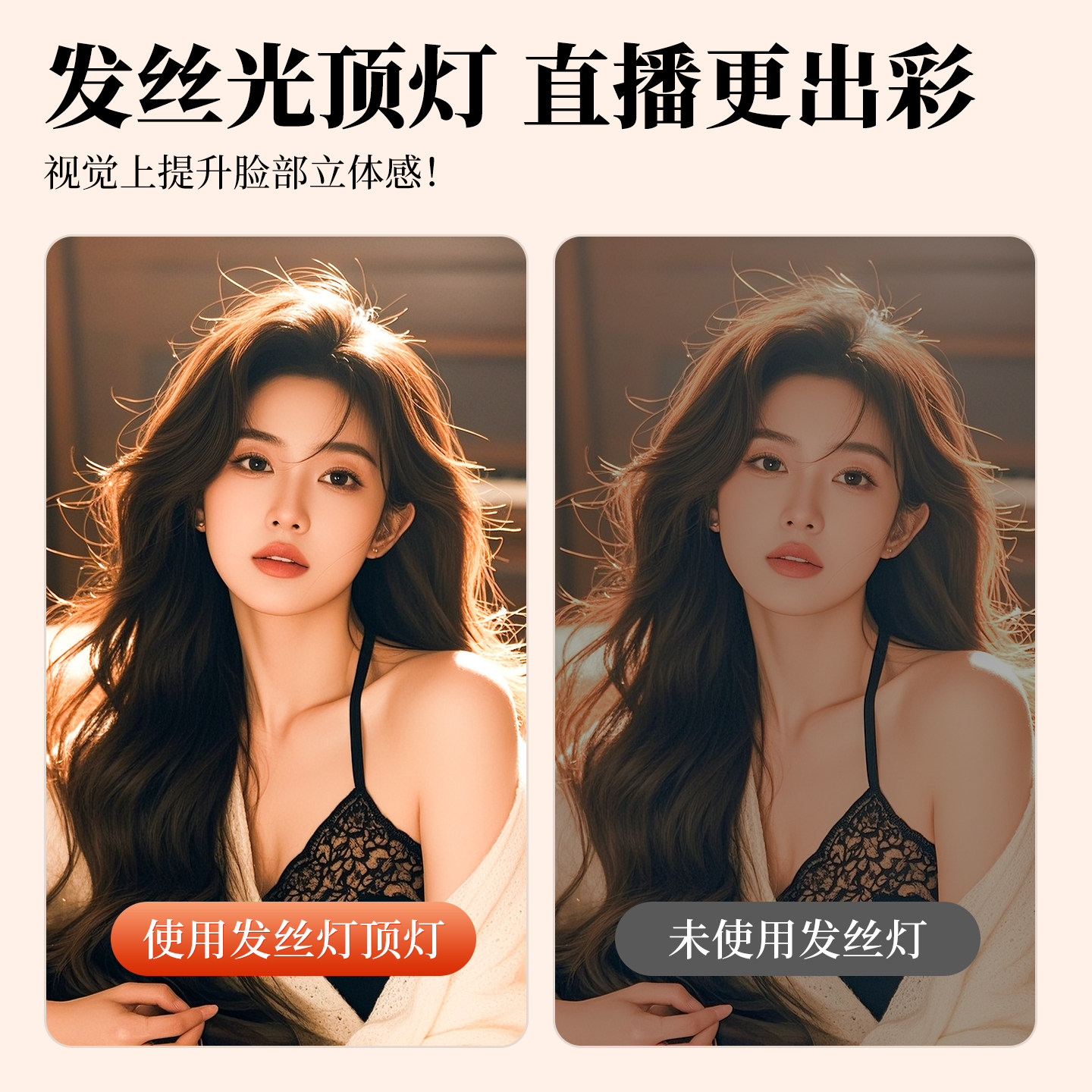 发丝灯主播头顶补光专用直播间顶灯拍摄神明少女逆光可调焦轮廓背景人鱼姬氛围聚光灯人像轮廓桌面美颜面光灯