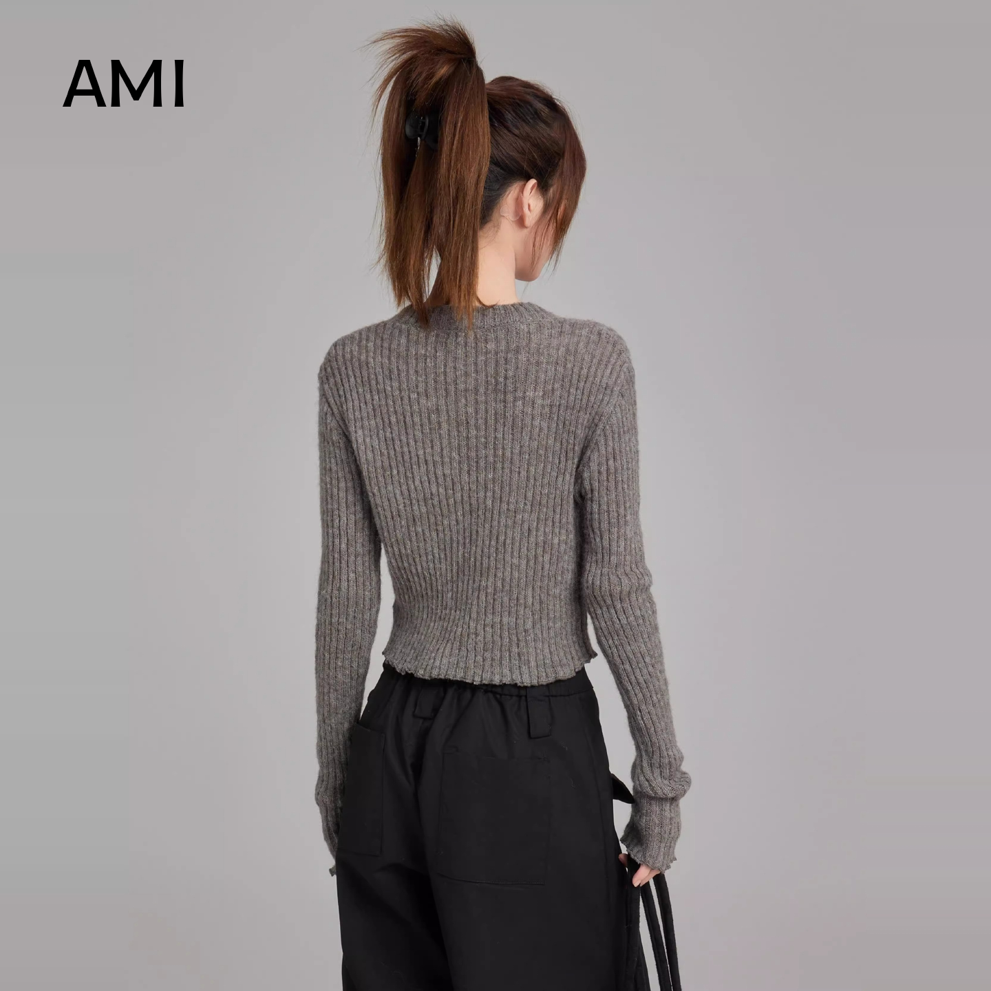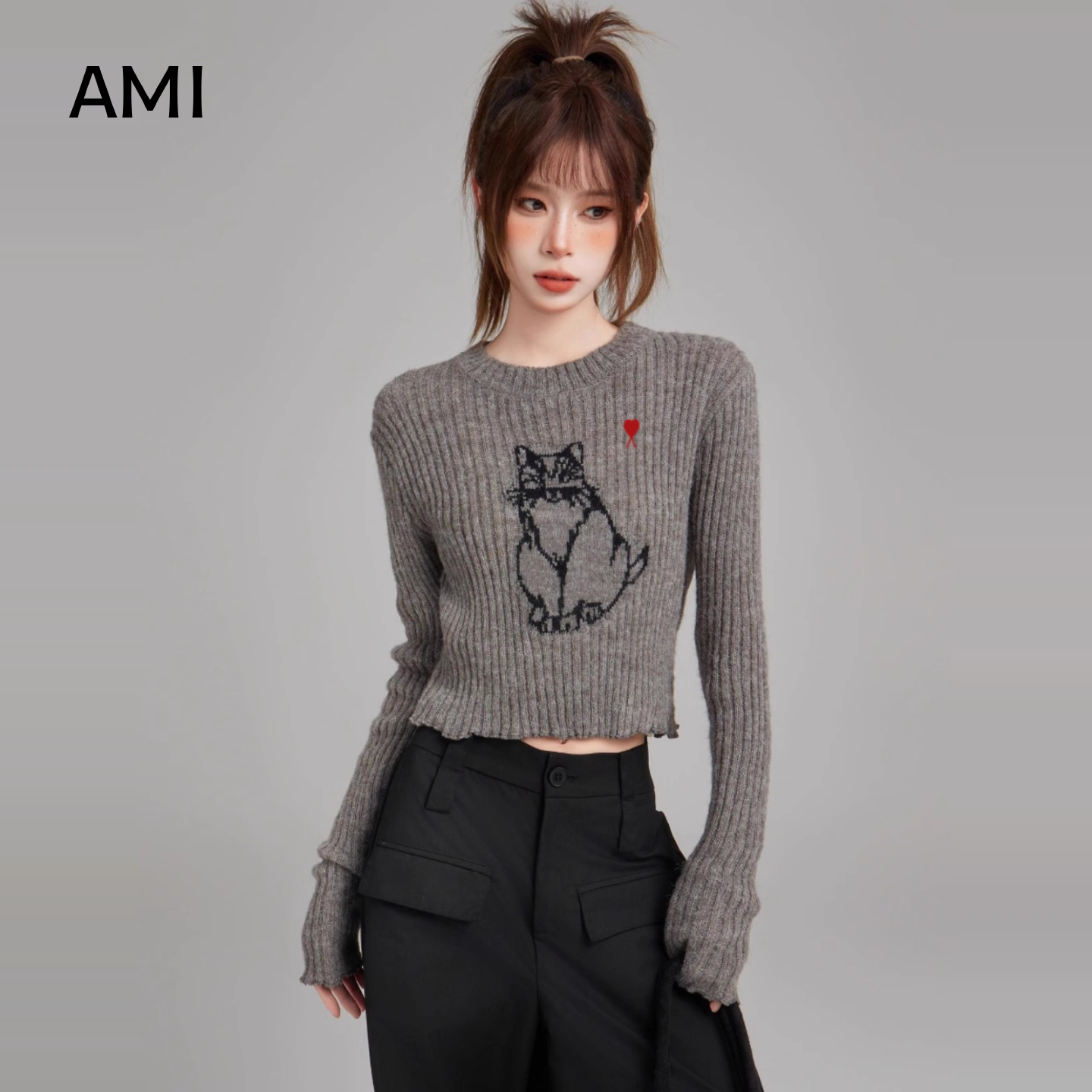 毛衣女春初春新款 AMI官方美式 灰色打底衫 套头针织衫 内搭打底 修身由