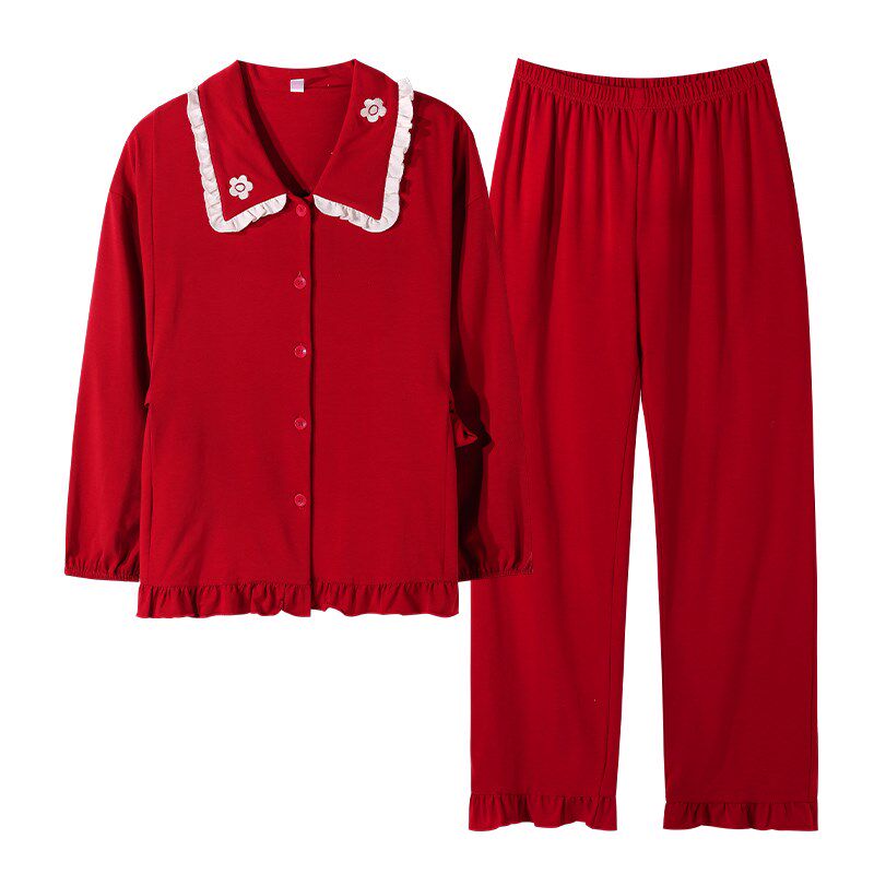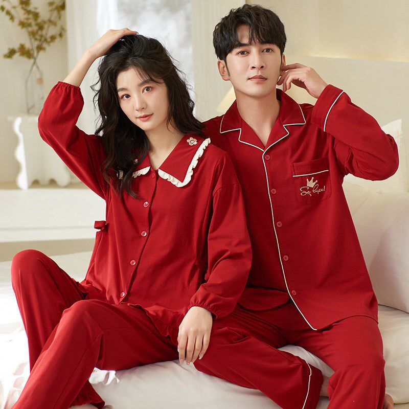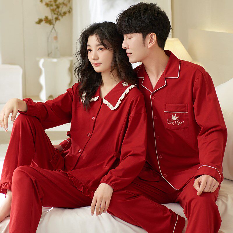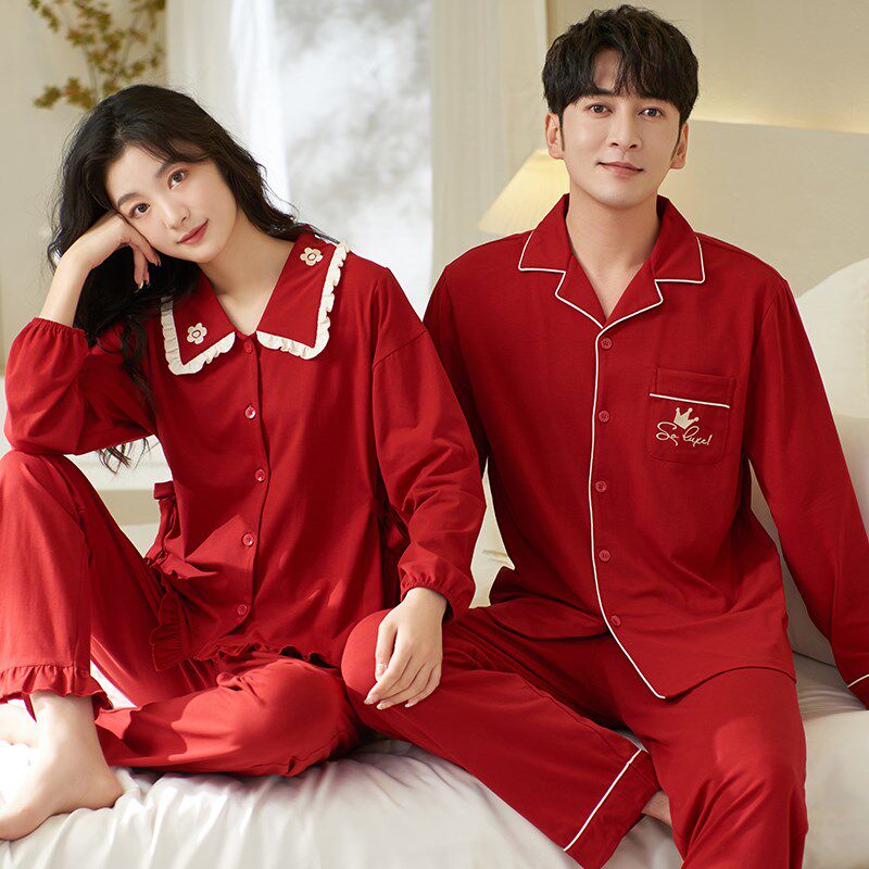 本命年男女士家居服可外穿 思馨坊情侣红色纯棉睡衣结婚新婚春秋季
