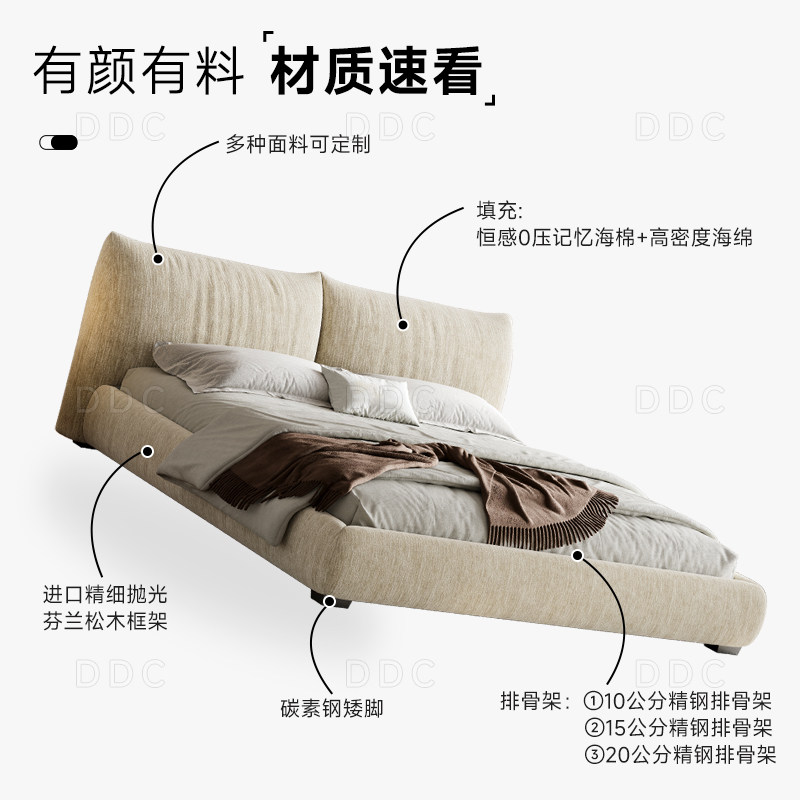 DDC软包花瓣布艺床现代全拆洗实木主卧室双人床1米8雪尼尔储物床由