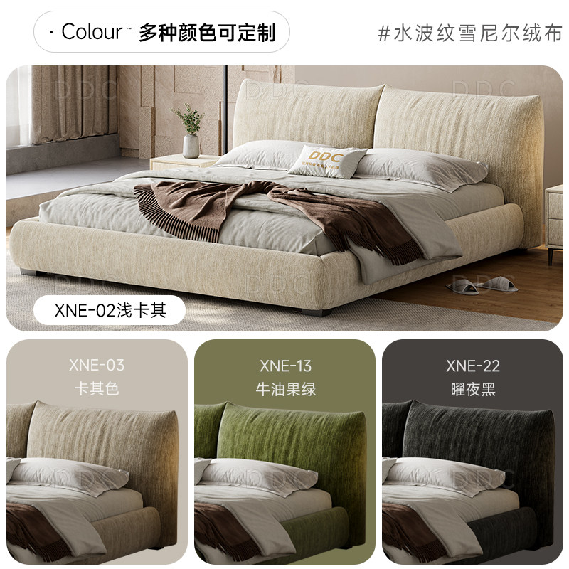 卡得利大象耳朵床现代简约雪尼尔主卧双人小户型薄床头实木布艺床
