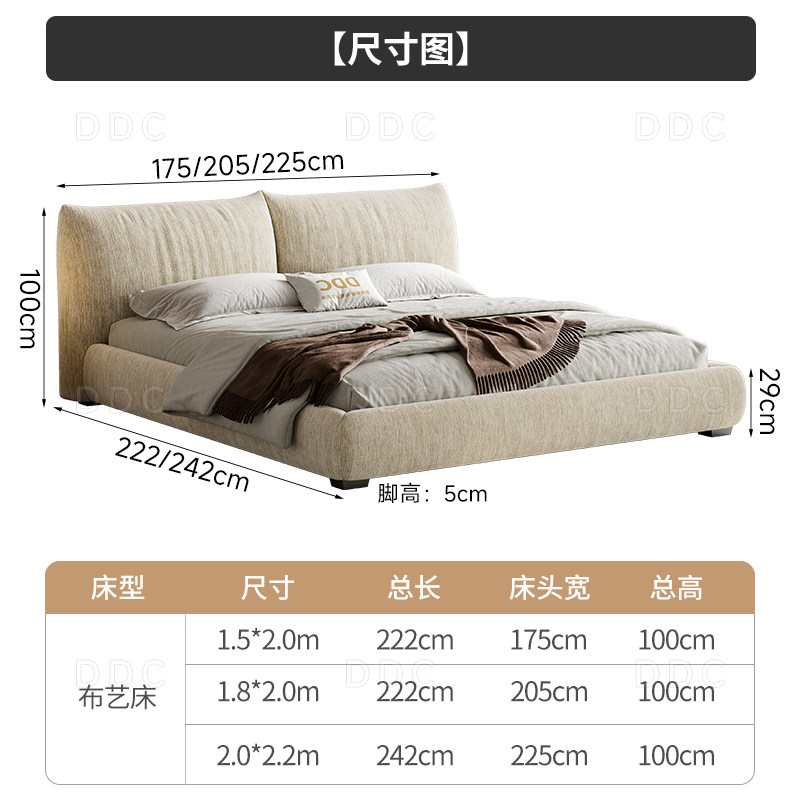 DDC软包花瓣布艺床现代全拆洗实木主卧室双人床1米8雪尼尔储物床