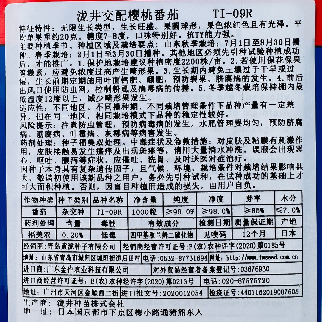 为您提供商品泷井种苗TI 播 09R樱桃番茄种子抗病杂交口感好小西红柿种籽春秋季的详细介绍,