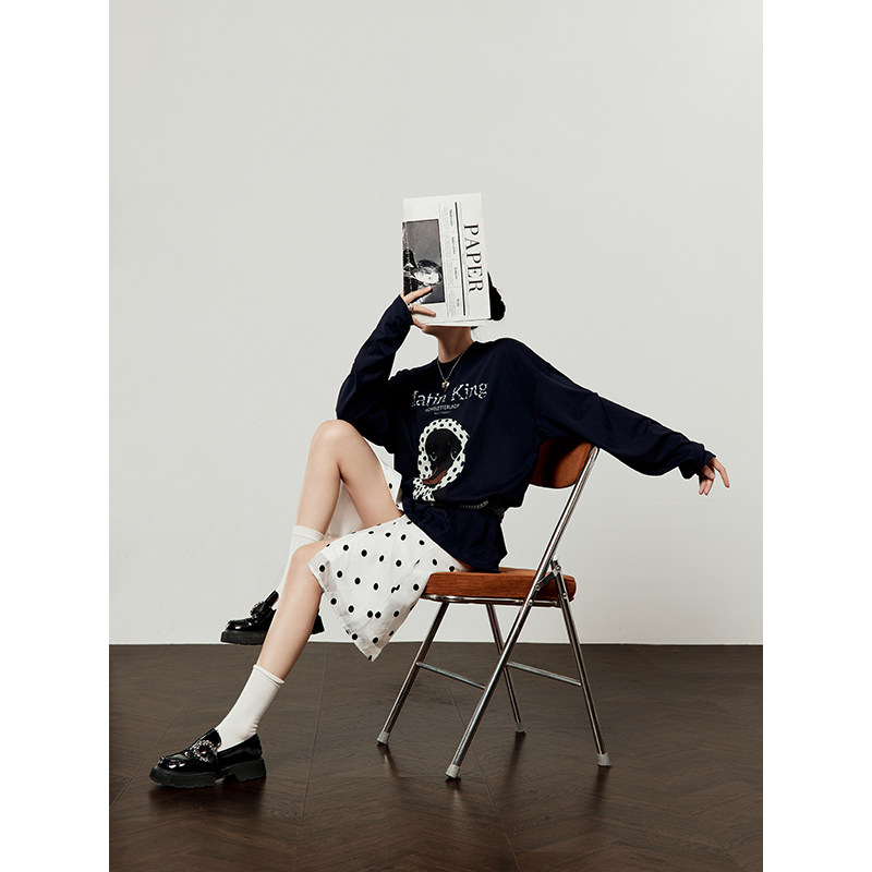 波点半身裙女开叉醋酸蕾丝拼接复古百搭包臀半裙由