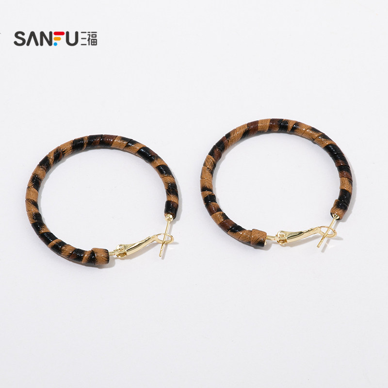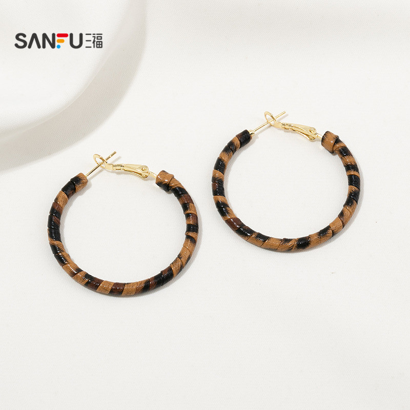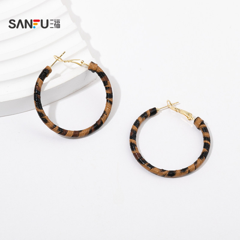 个性 气质首饰配饰耳饰848955 时尚 三福复古豹纹皮圈环耳环一对