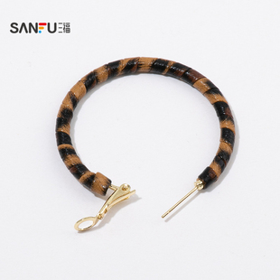个性 气质首饰配饰耳饰848955 时尚 三福复古豹纹皮圈环耳环一对由