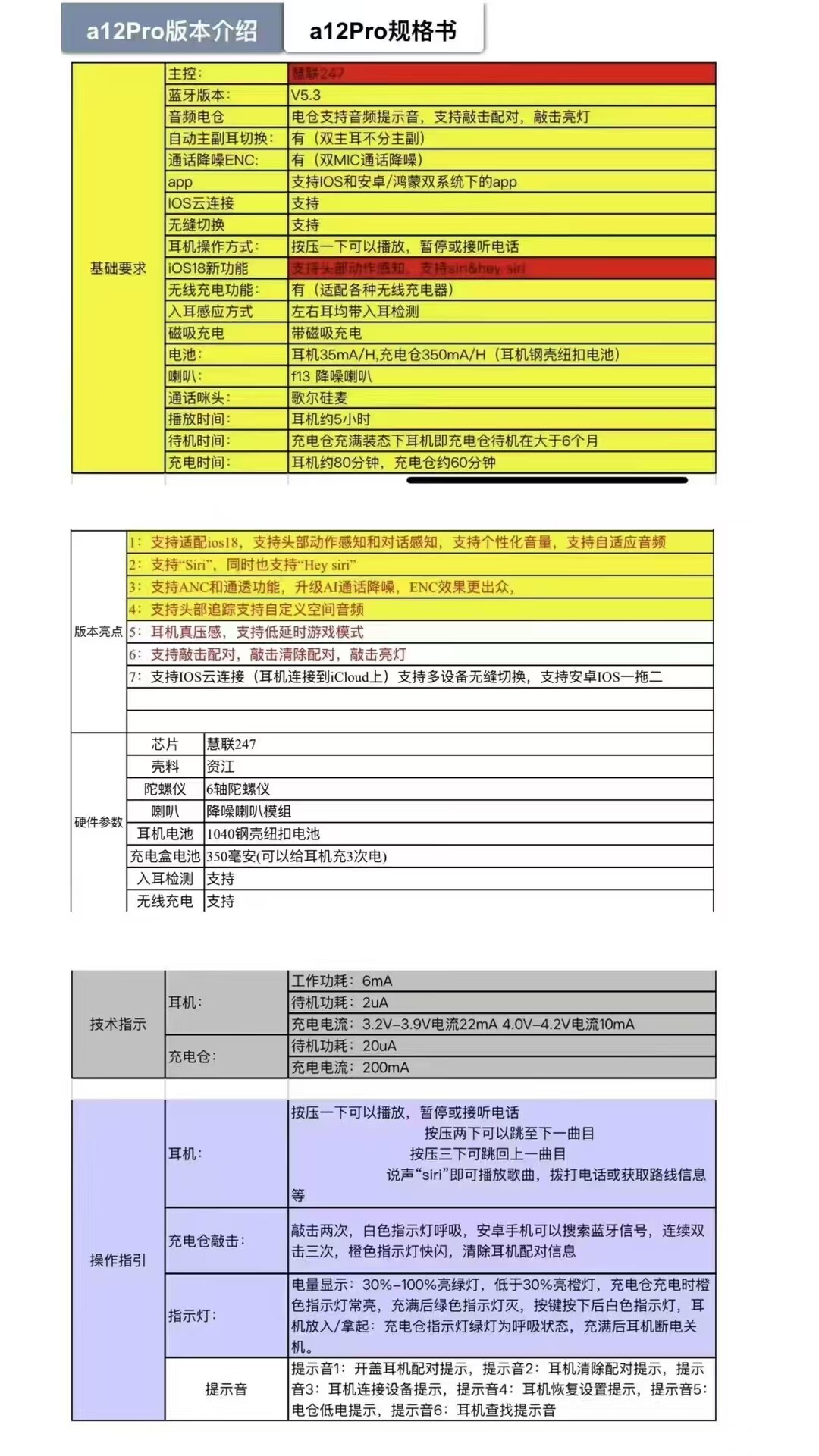 为您提供商品半入耳式 六代七代降噪自适应对话感知原装 蓝牙耳机 慧联A12pro的详细介绍,