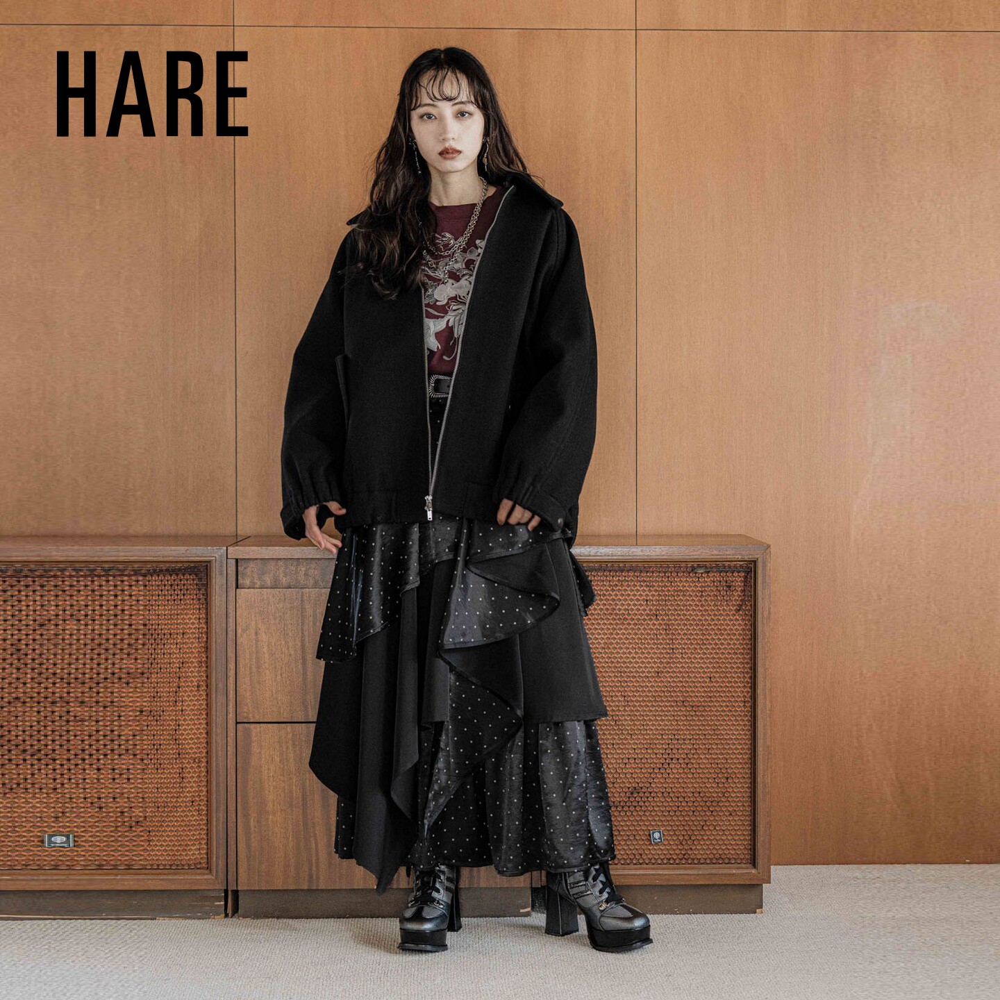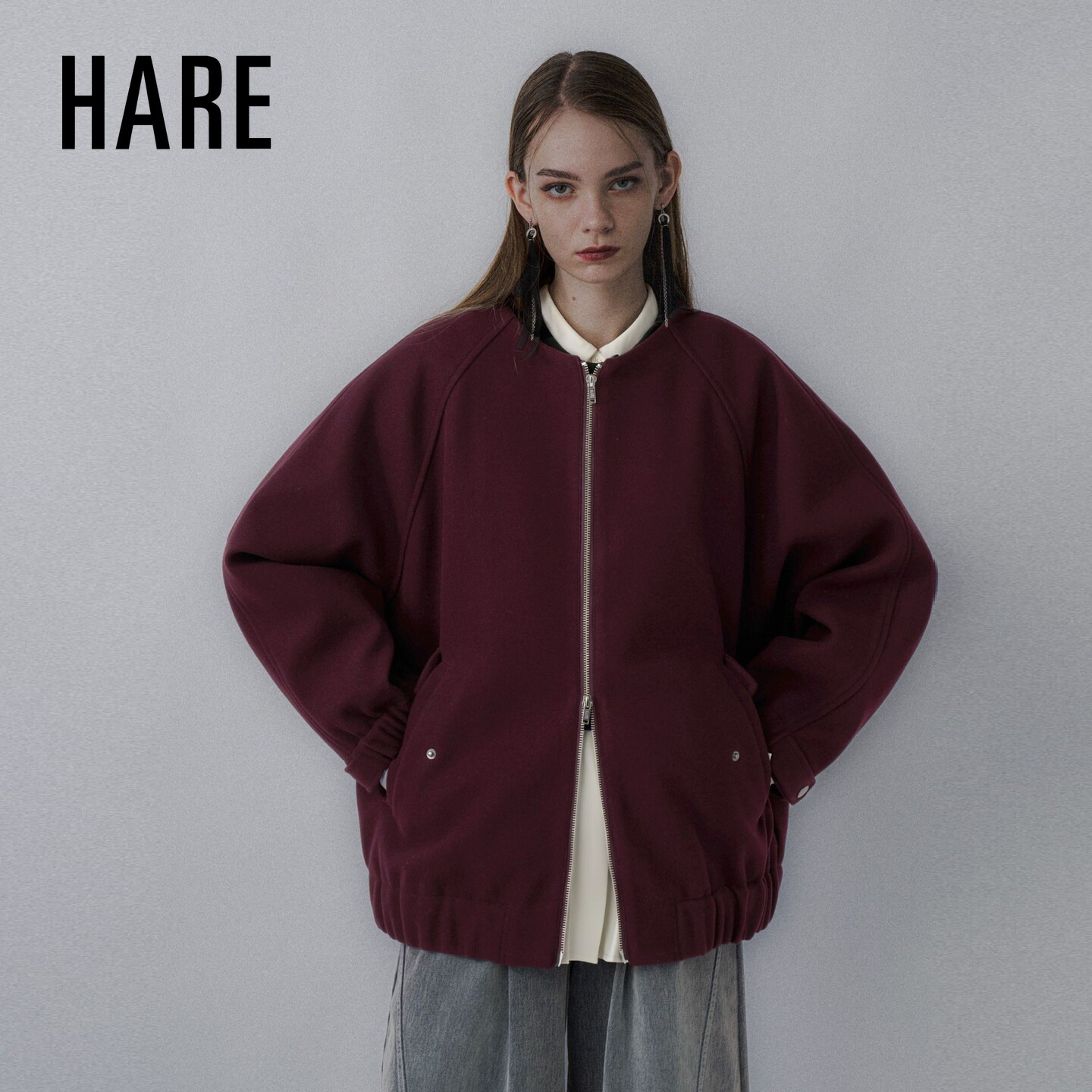 翻领拉链款 呢子大衣夹棉厚外套328590 新款 HARE毛呢外套女2025冬季由