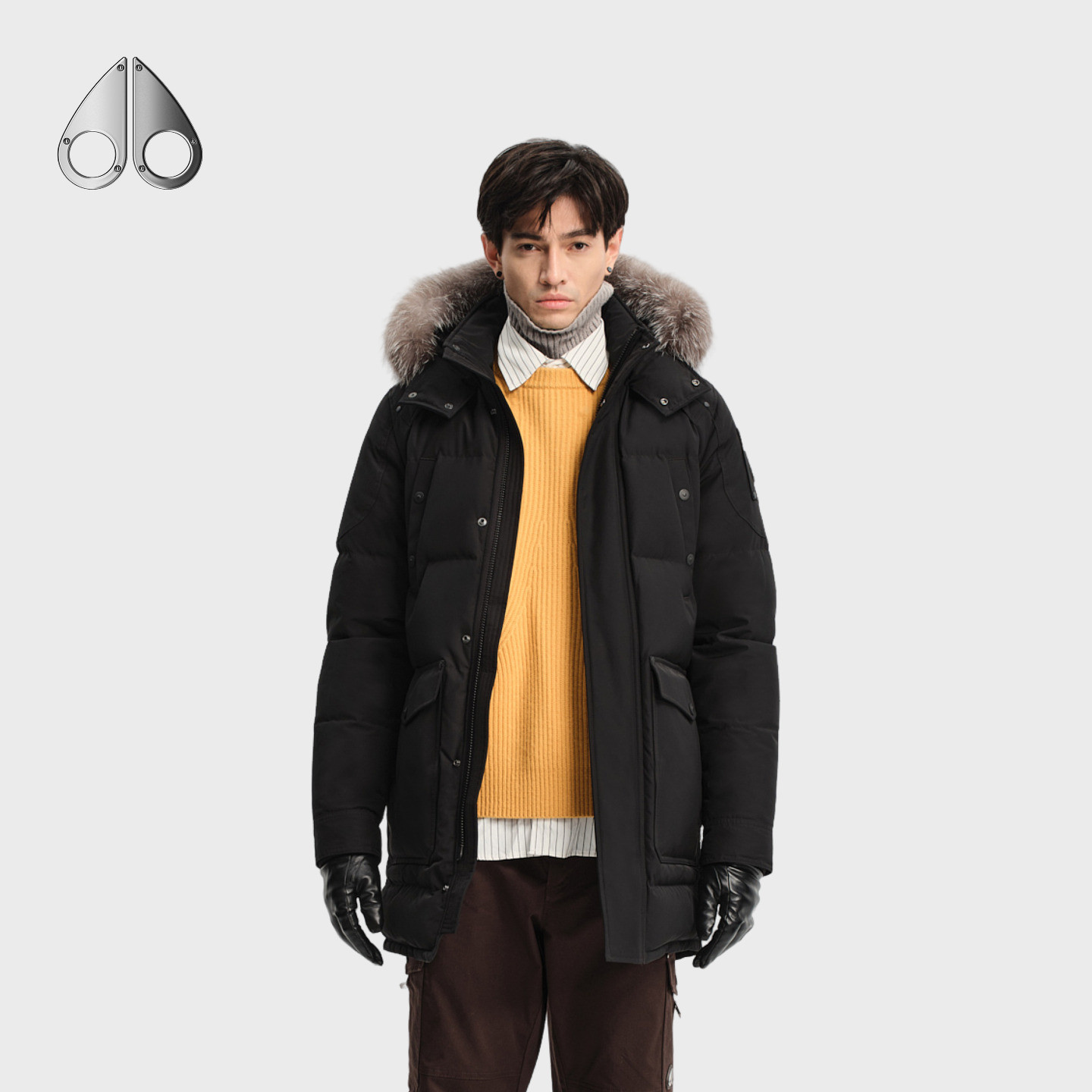 RIDGE BIG KNUCKLES 小剪刀羽绒服 男士 霜狐毛领中长款 ONYX MOOSE