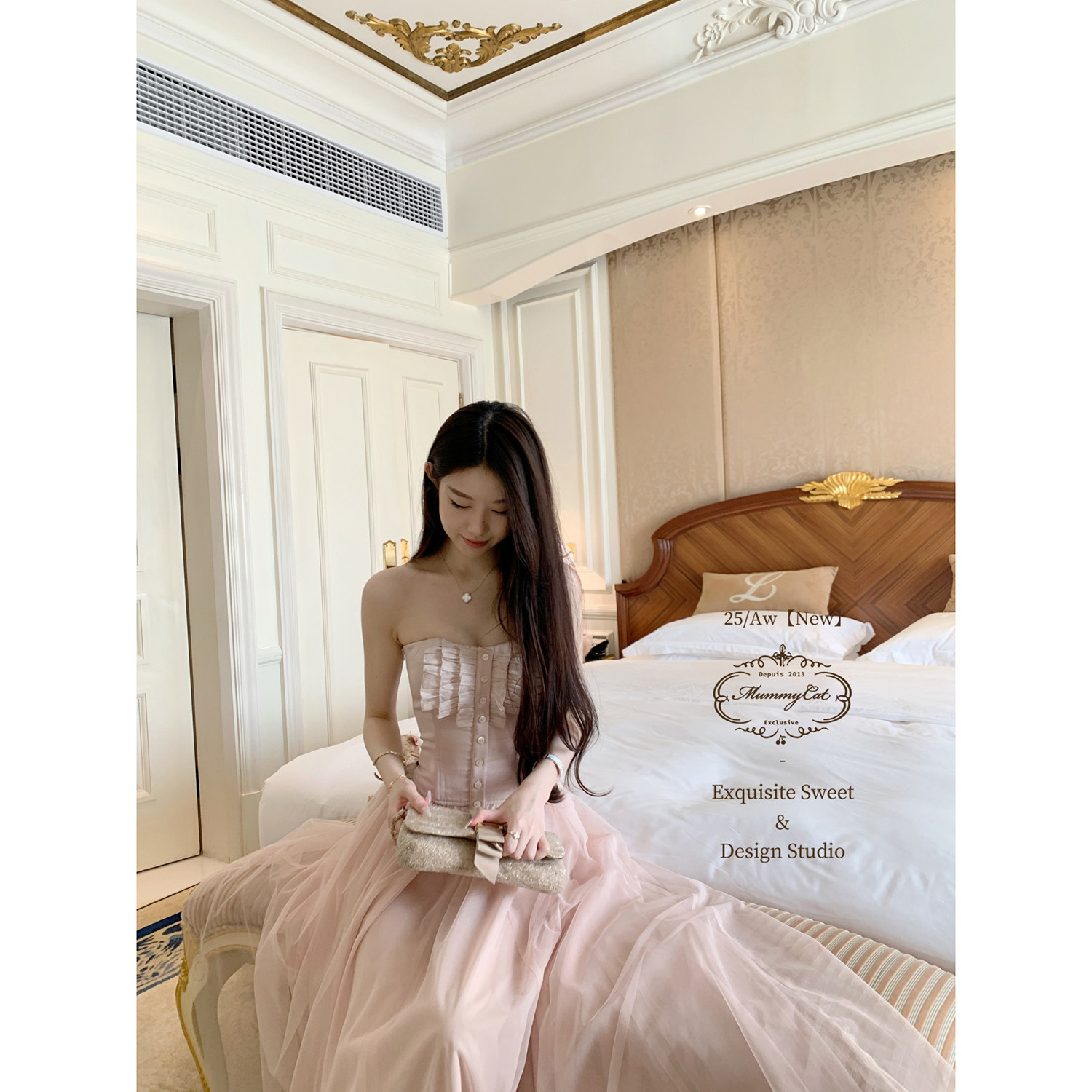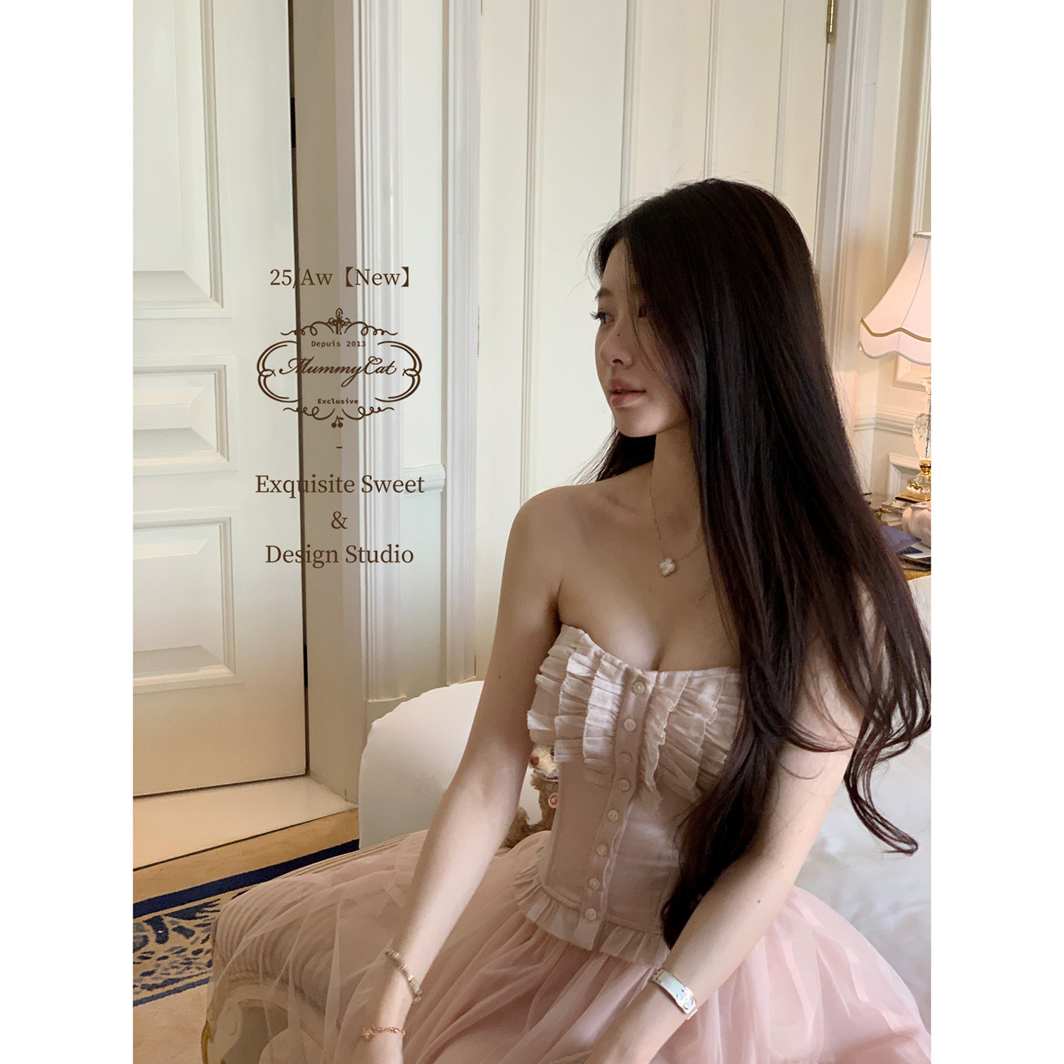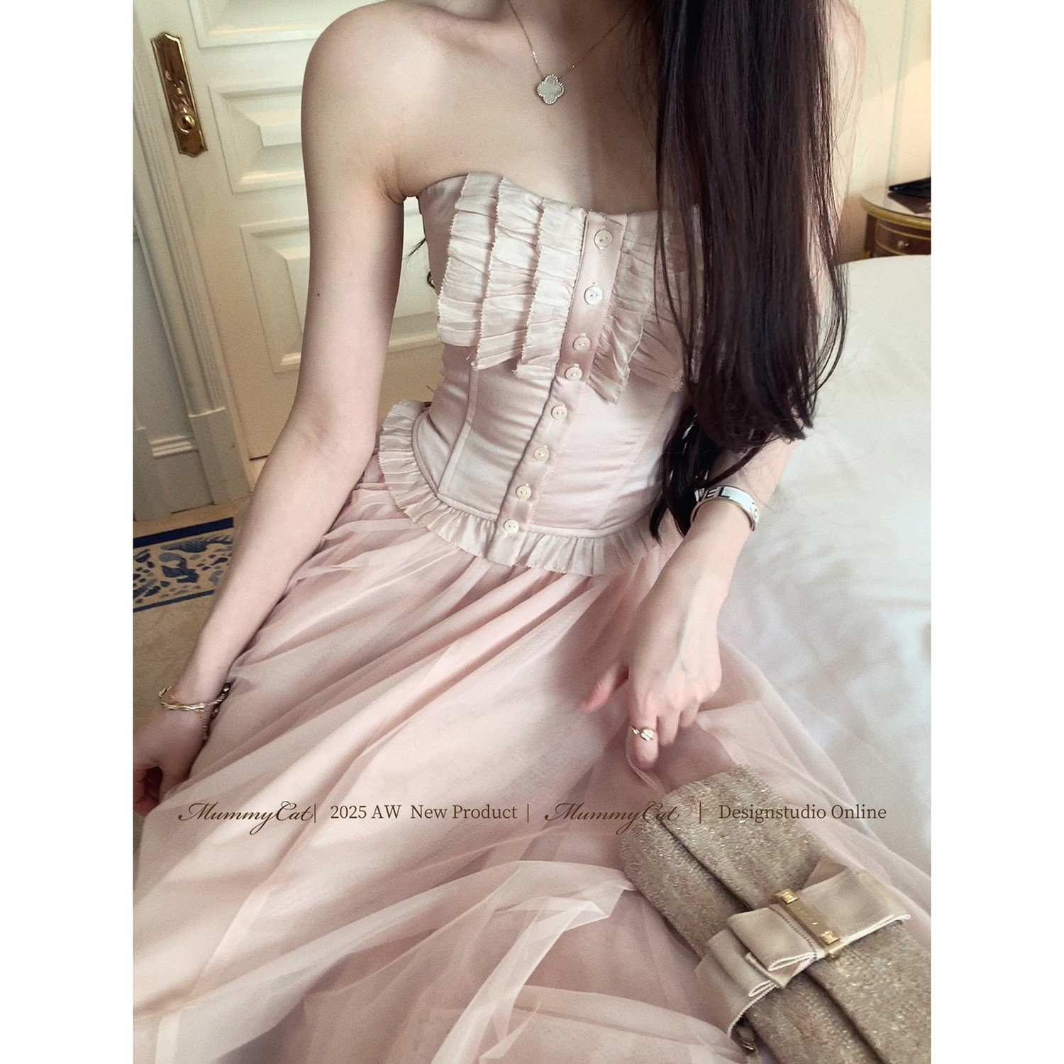 MummyCat下蛋喵 新品 法式 纯欲醋酸蕾丝鱼骨抹胸胸衣 小步舞曲
