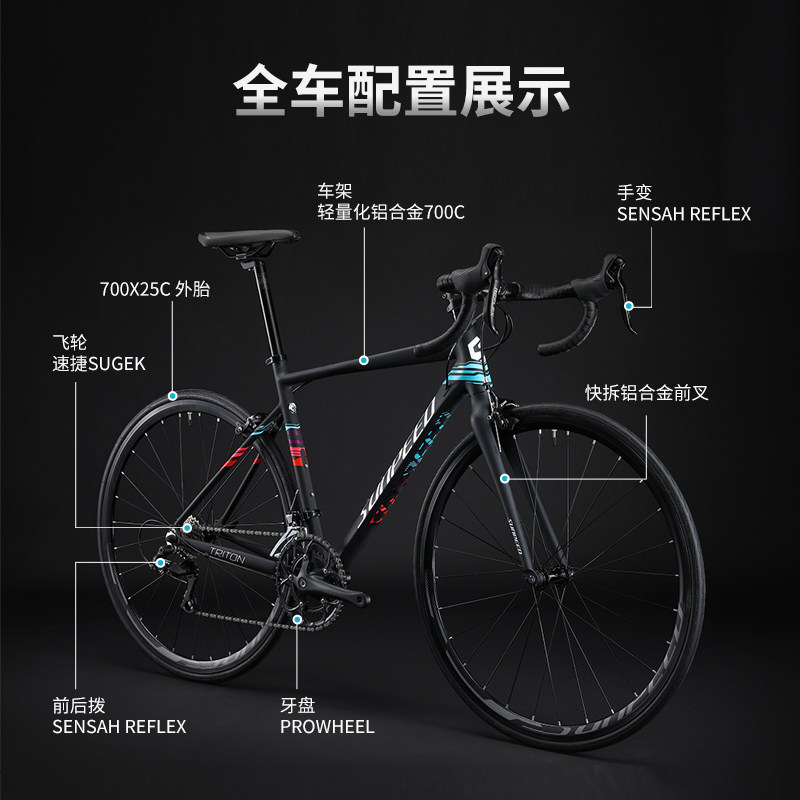 菲利普公路车自行车成人男款 轻便超轻变速赛车 平把单车青少年女式