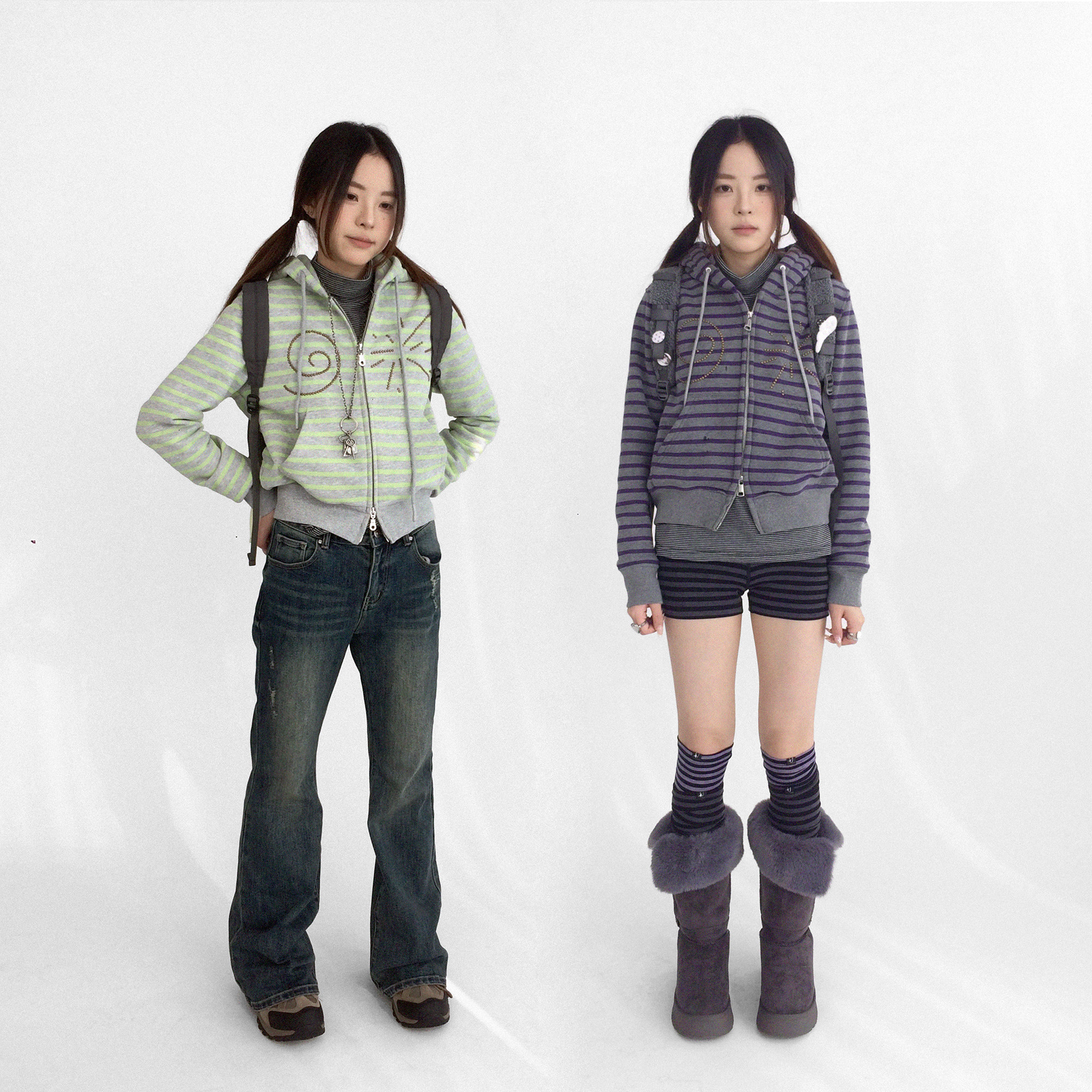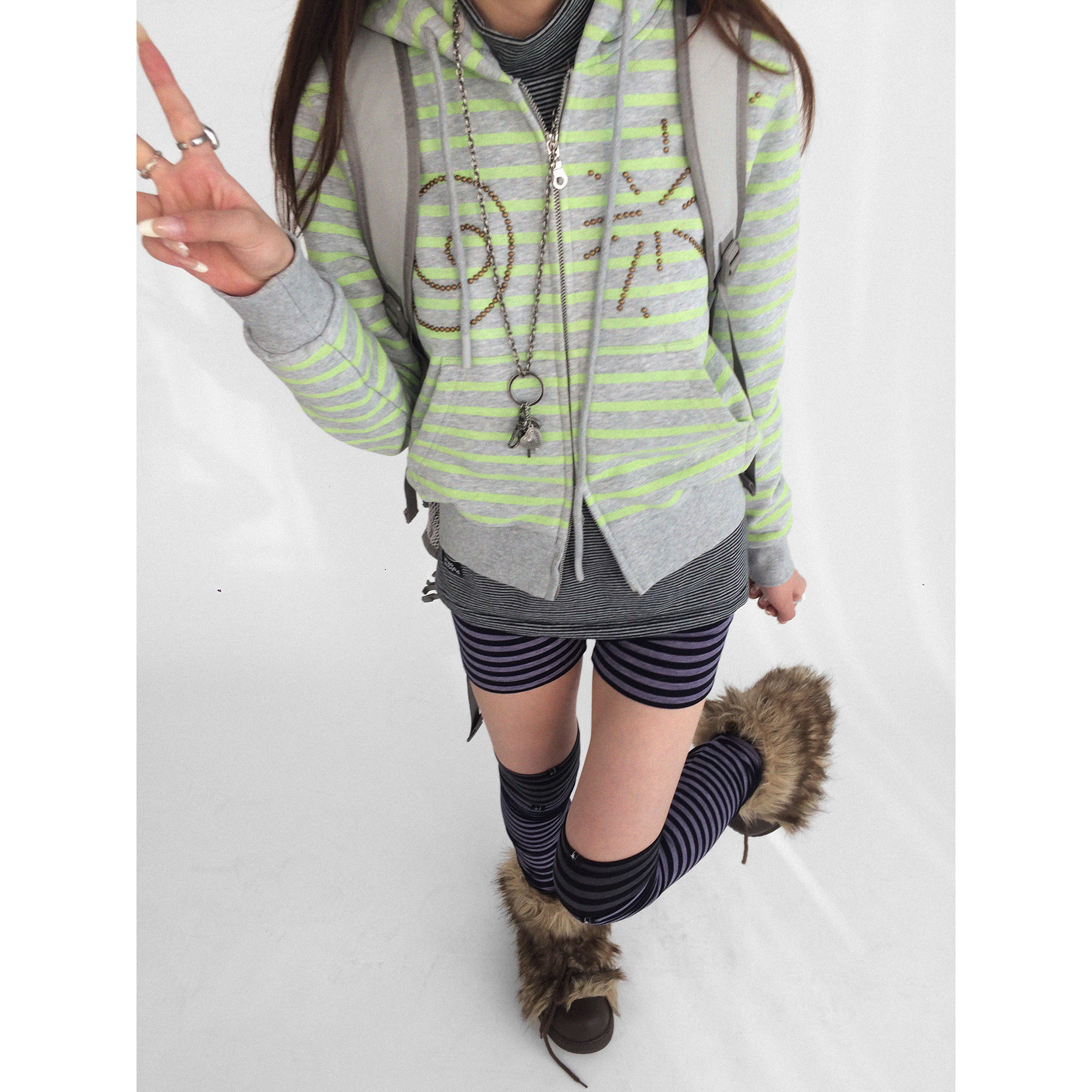 卫衣外套短款 显瘦 酸葡萄条纹合身正肩连帽开衫 innomoood由