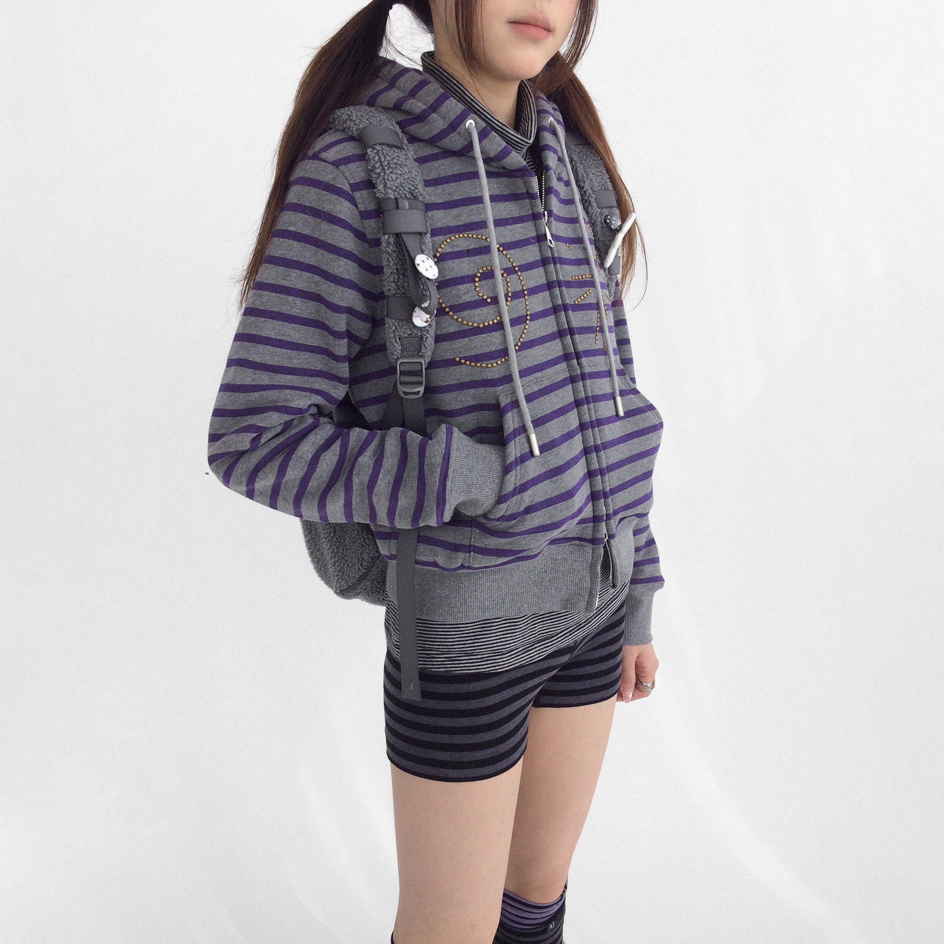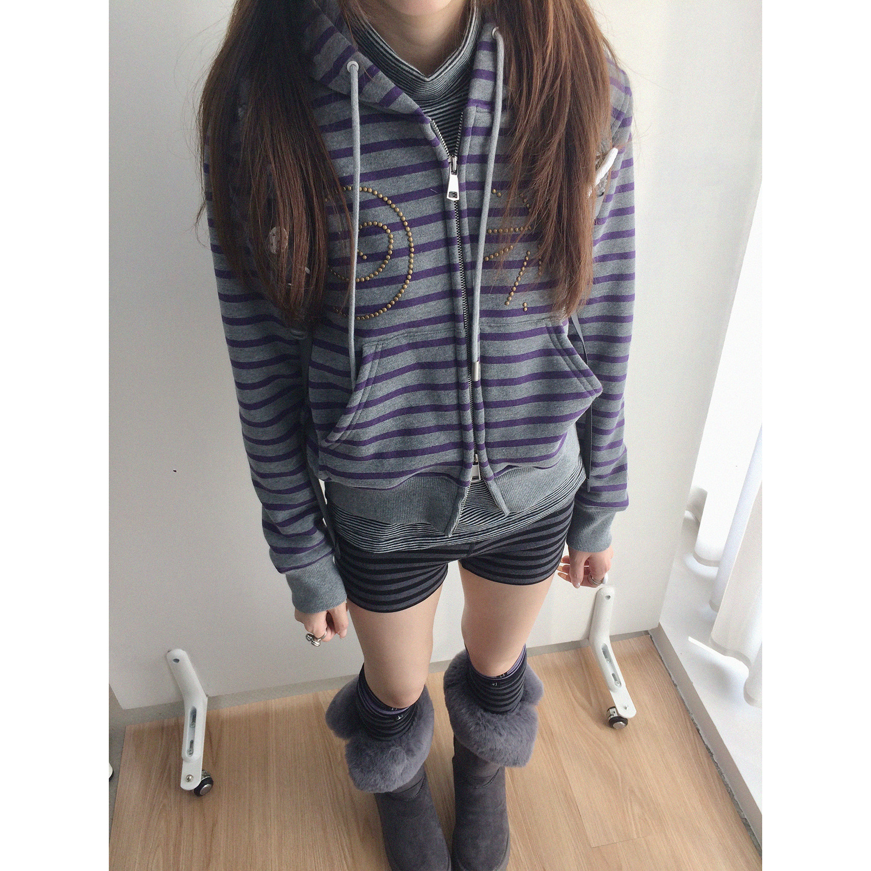 卫衣外套短款 显瘦 酸葡萄条纹合身正肩连帽开衫 innomoood