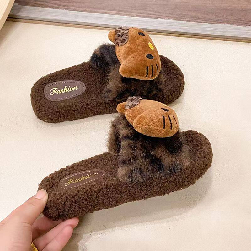 女居家防滑豹纹毛毛拖鞋 女可外穿 秋冬可爱卡通棉拖鞋 2025网红时尚