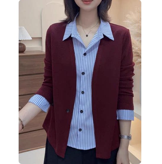 为您提供商品洋气百搭气质长袖 假两件条纹衬衫 上衣女 X时尚 妈妈装 2026春季 新款的详细介绍,