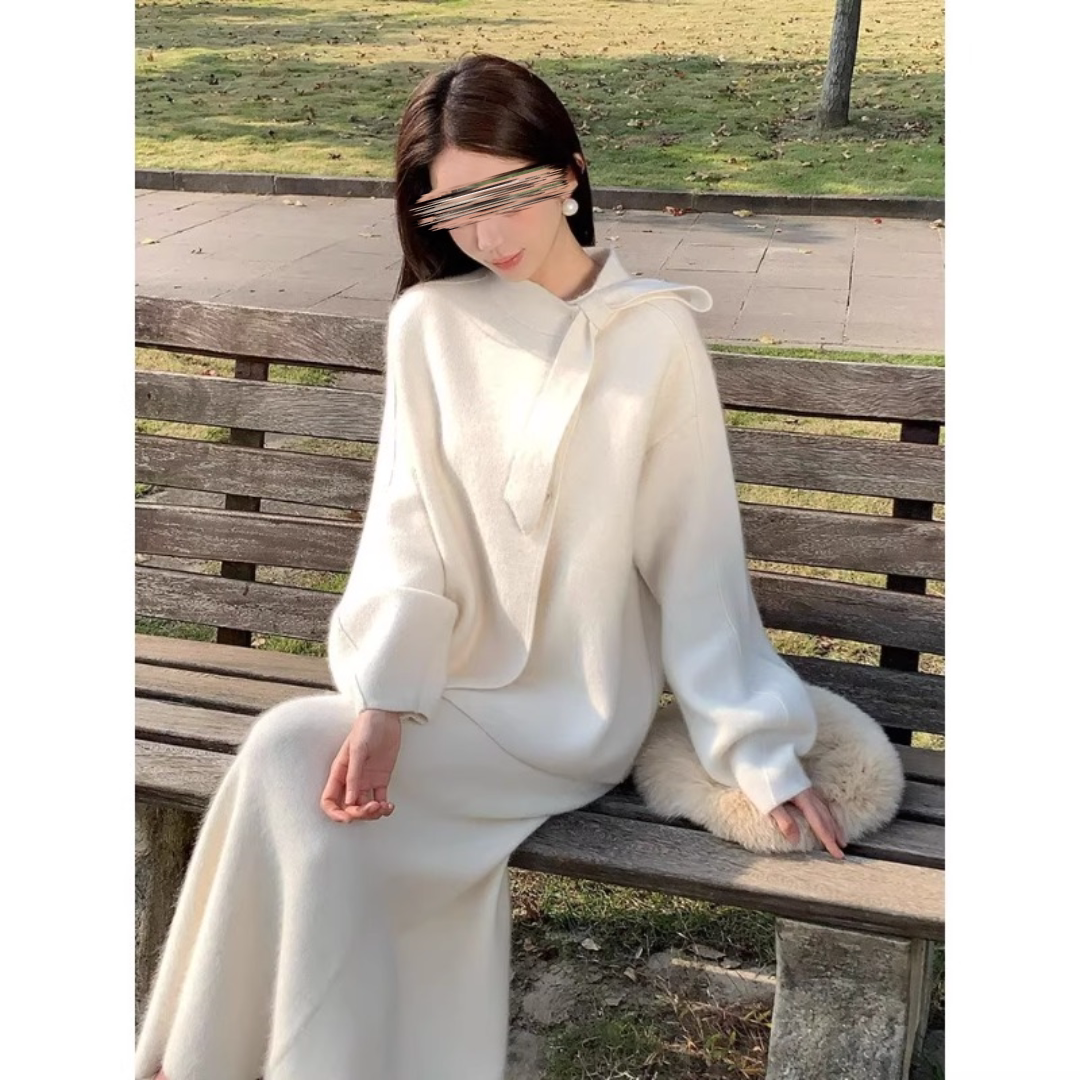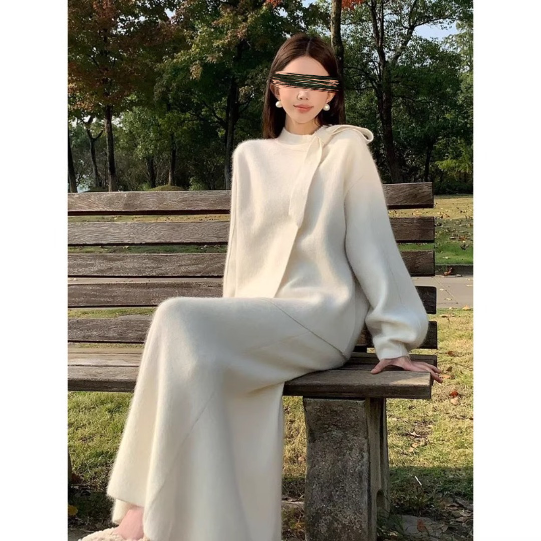 为您提供商品女百搭两件套 早秋端庄大气名媛高级感温柔小香风白色针织毛衣套装的详细介绍,