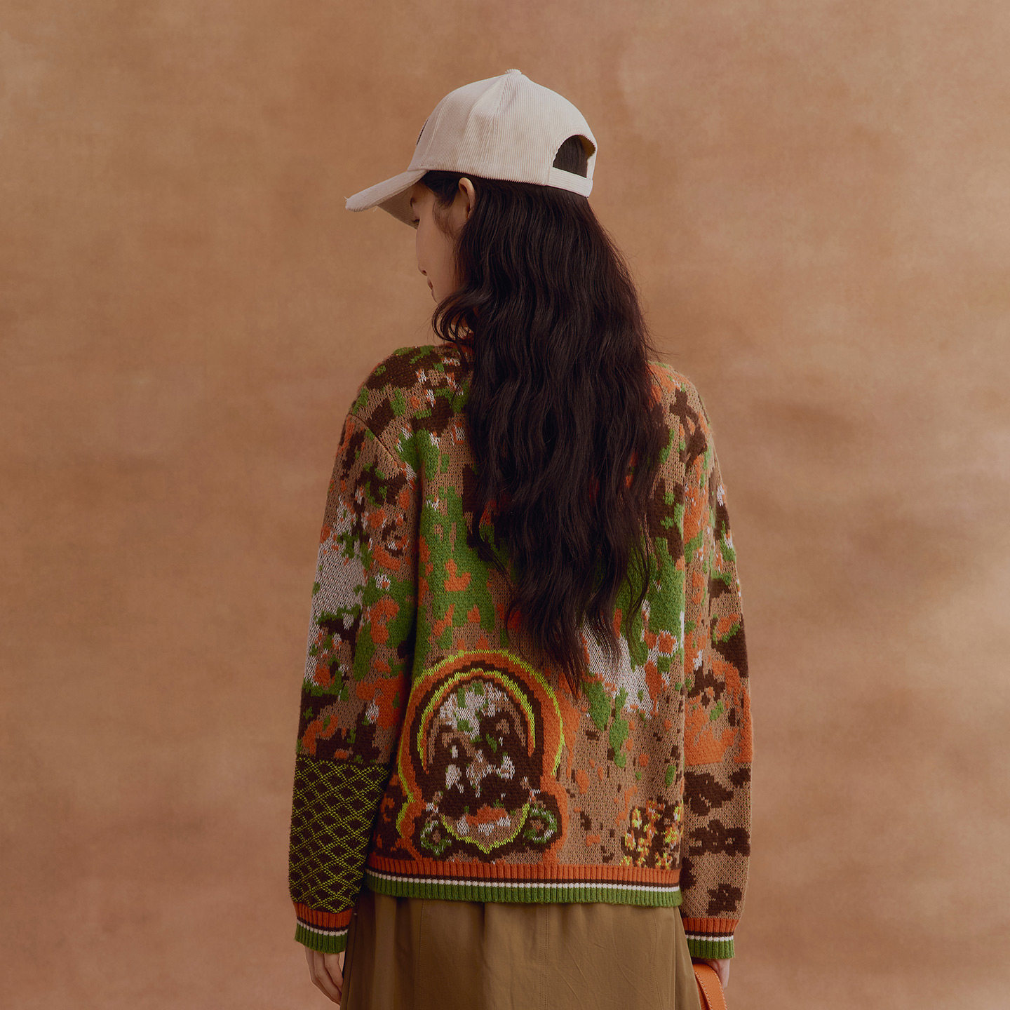 新款 山茶初绽 一城画一2025冬季 套头毛衫 复古慵懒风绵羊毛短款