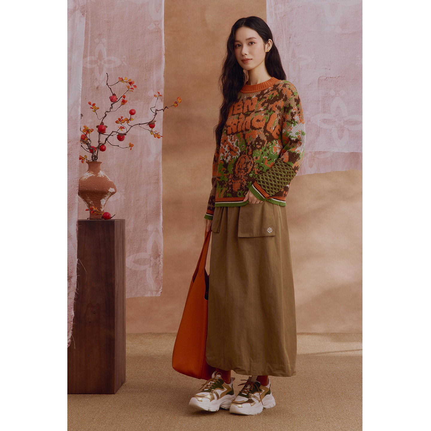 新款 山茶初绽 一城画一2025冬季 套头毛衫 复古慵懒风绵羊毛短款由