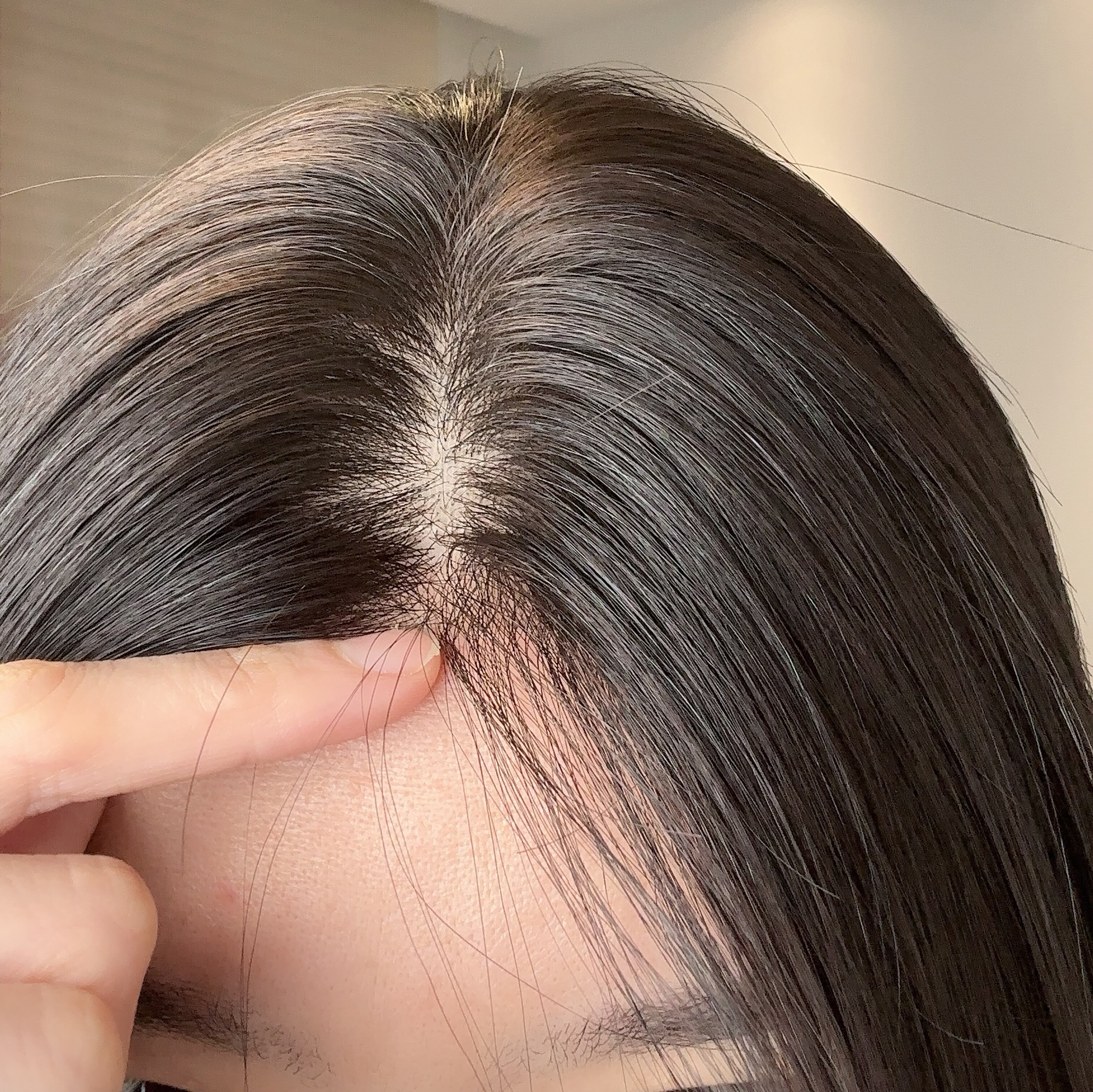 假发片女头顶补发量高颅顶全真发遮白发自然前额刘海片胎毛 美禾