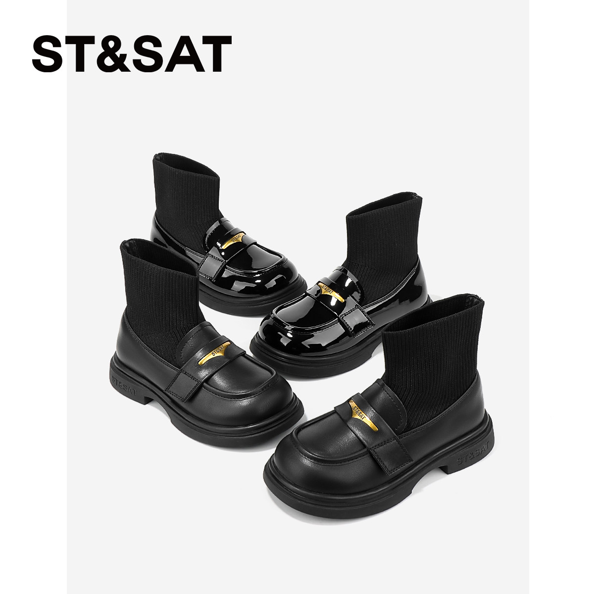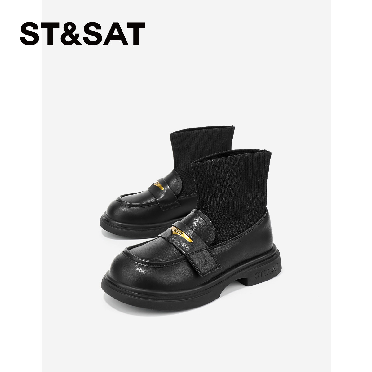 星期六童鞋 洋气加绒短靴小女孩外穿保暖袜子靴 儿童靴子女童冬季