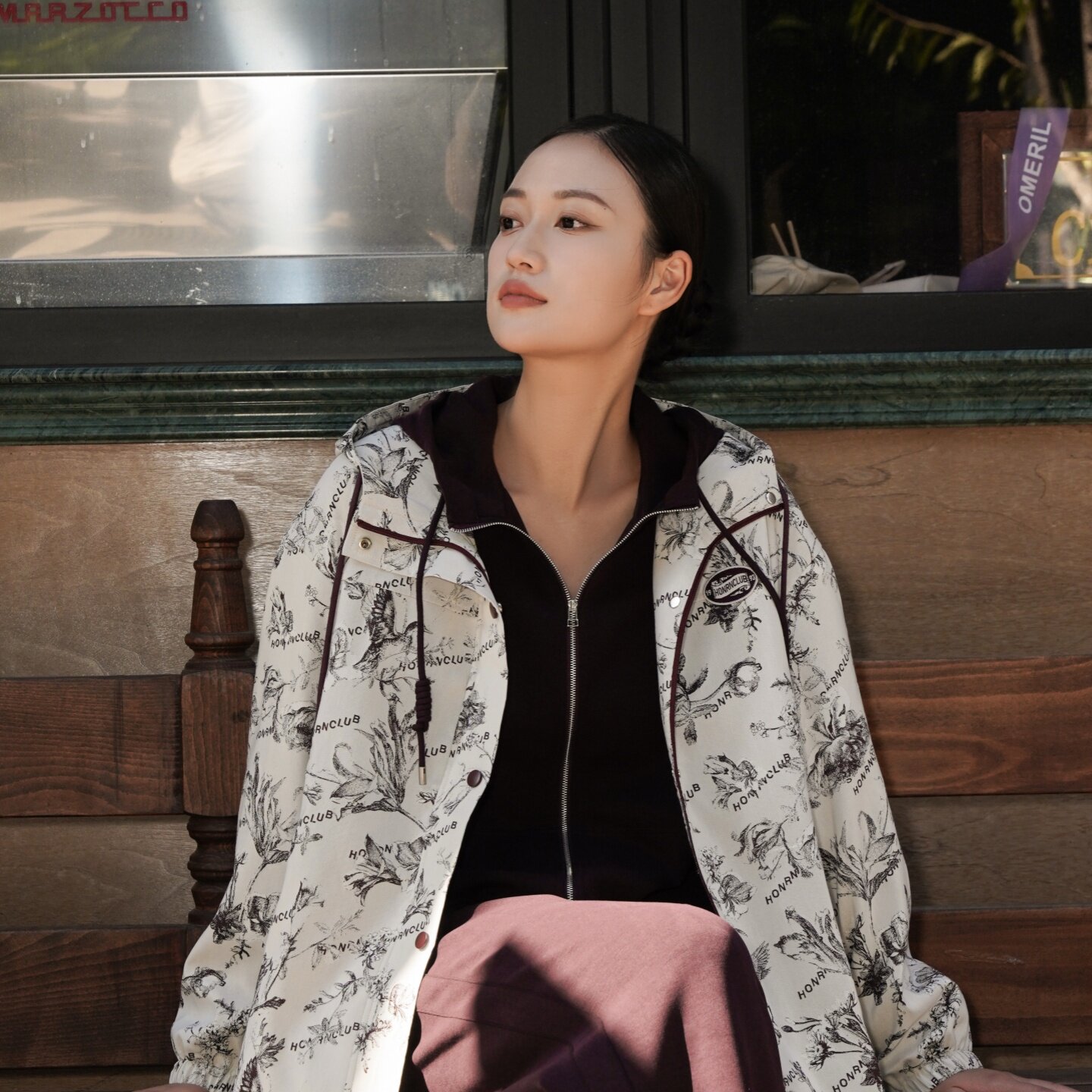 红人休闲连帽拉链宽松风衣短外套女HK33OS413 HONRN由