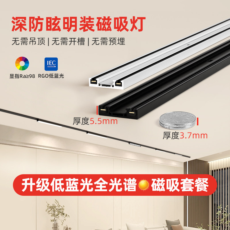 磁吸轨道灯嵌入式 15mm极窄全光谱护眼真磁吸灯 无主灯客厅家用暗装