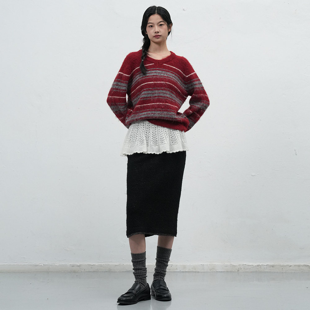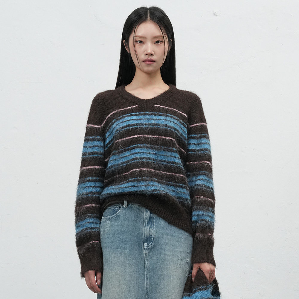 GENERAL IDEA毛毛撞色条纹软糯V领宽松套头毛衣女 田曦薇同款