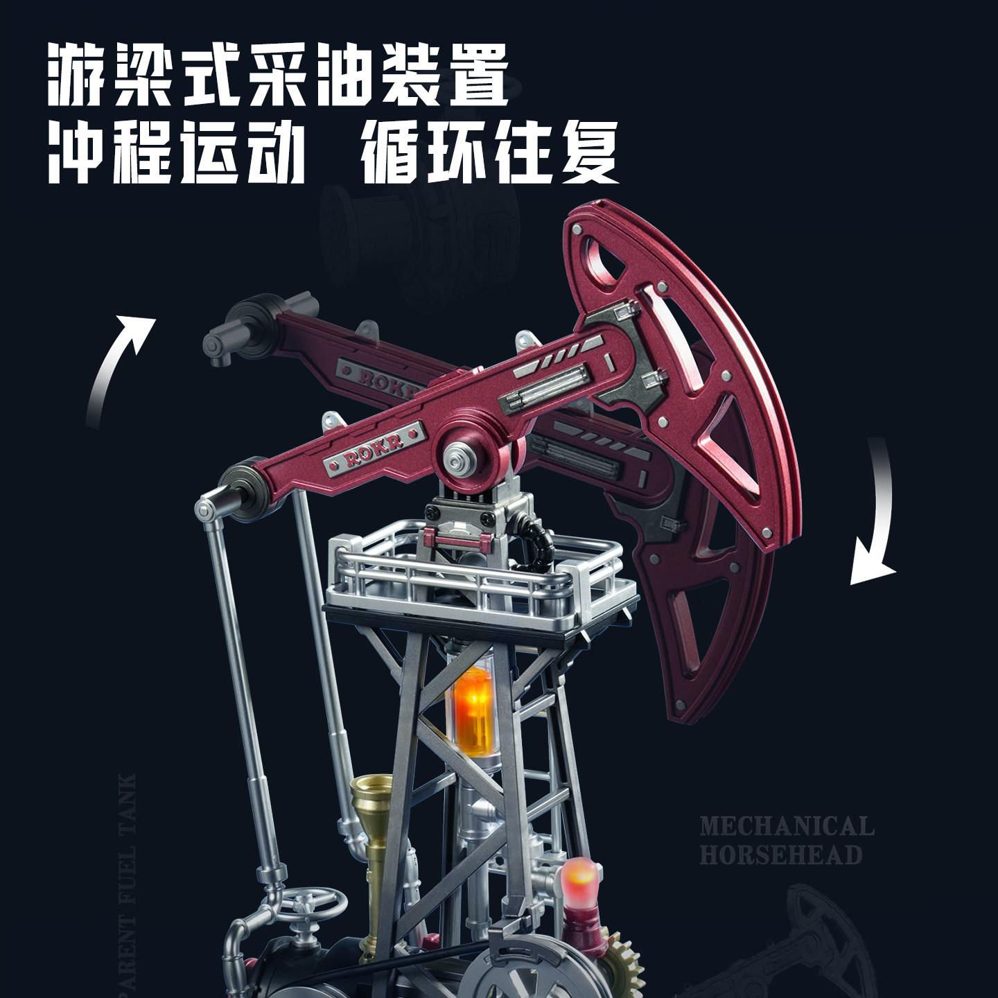 玩具机械模型男生孩生日礼物积木 若客工业之城岩心采油机积木拼装由