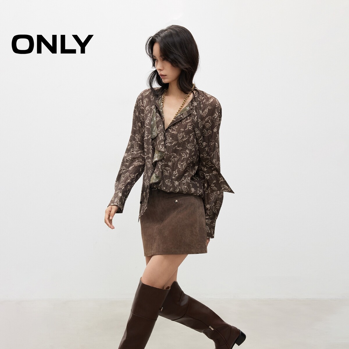 为您提供商品ONLY2026春季 法式 浪漫飘带印花荷叶边系带领口花边衬衫 上衣女 新款的详细介绍,