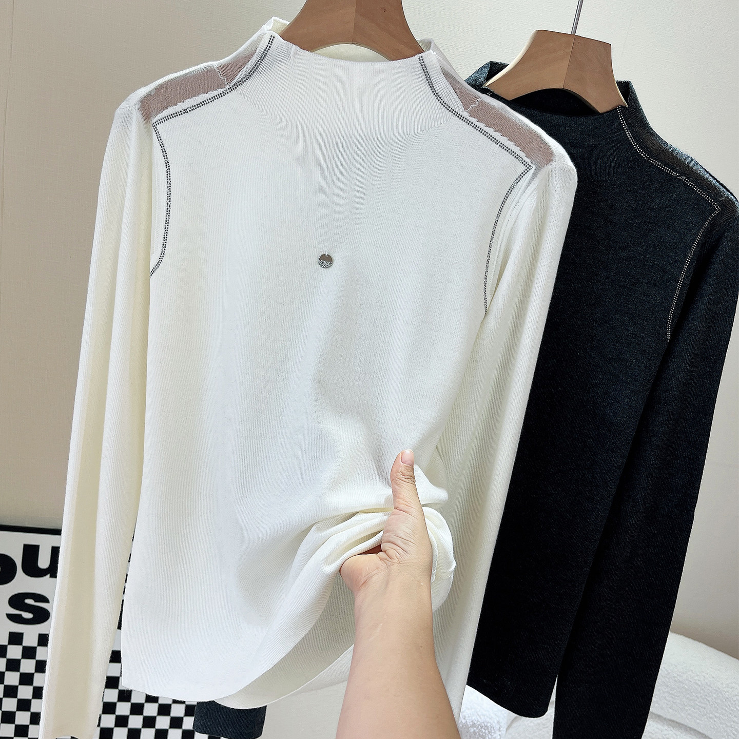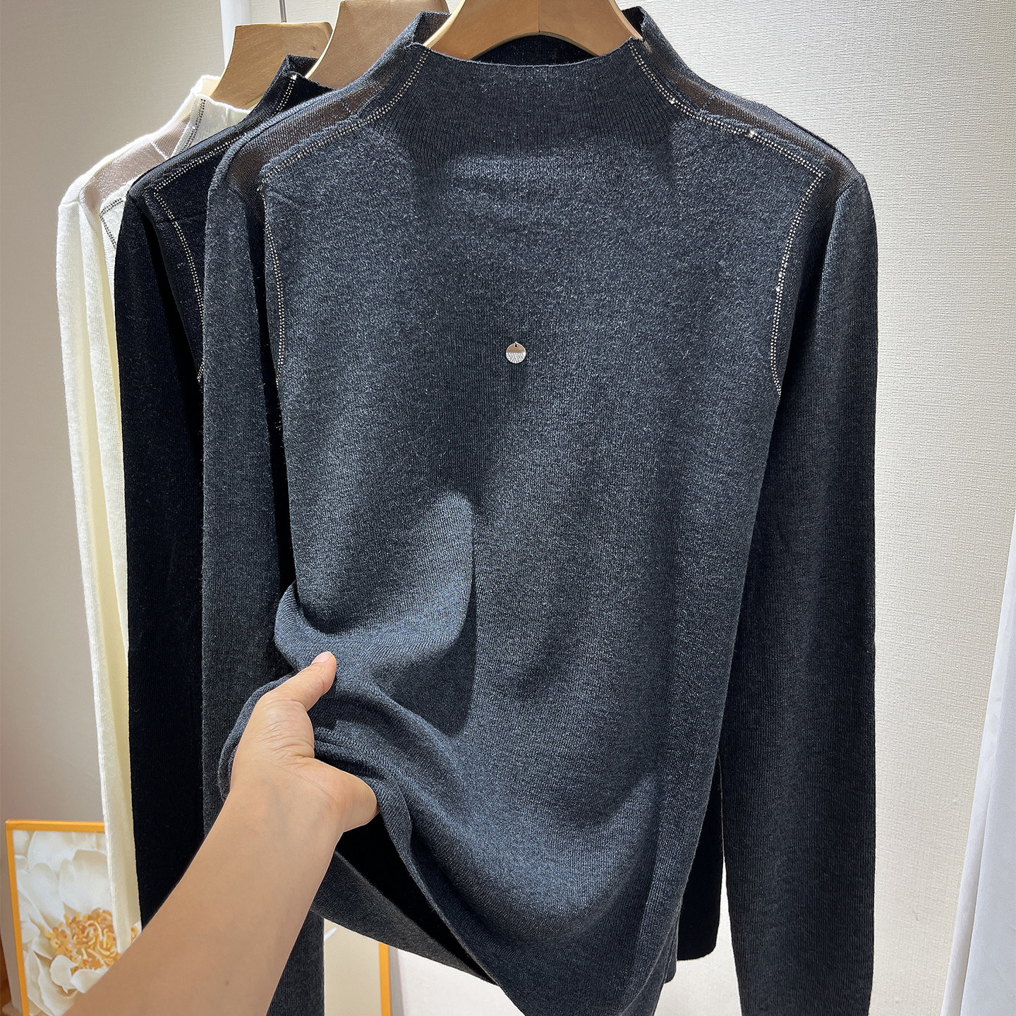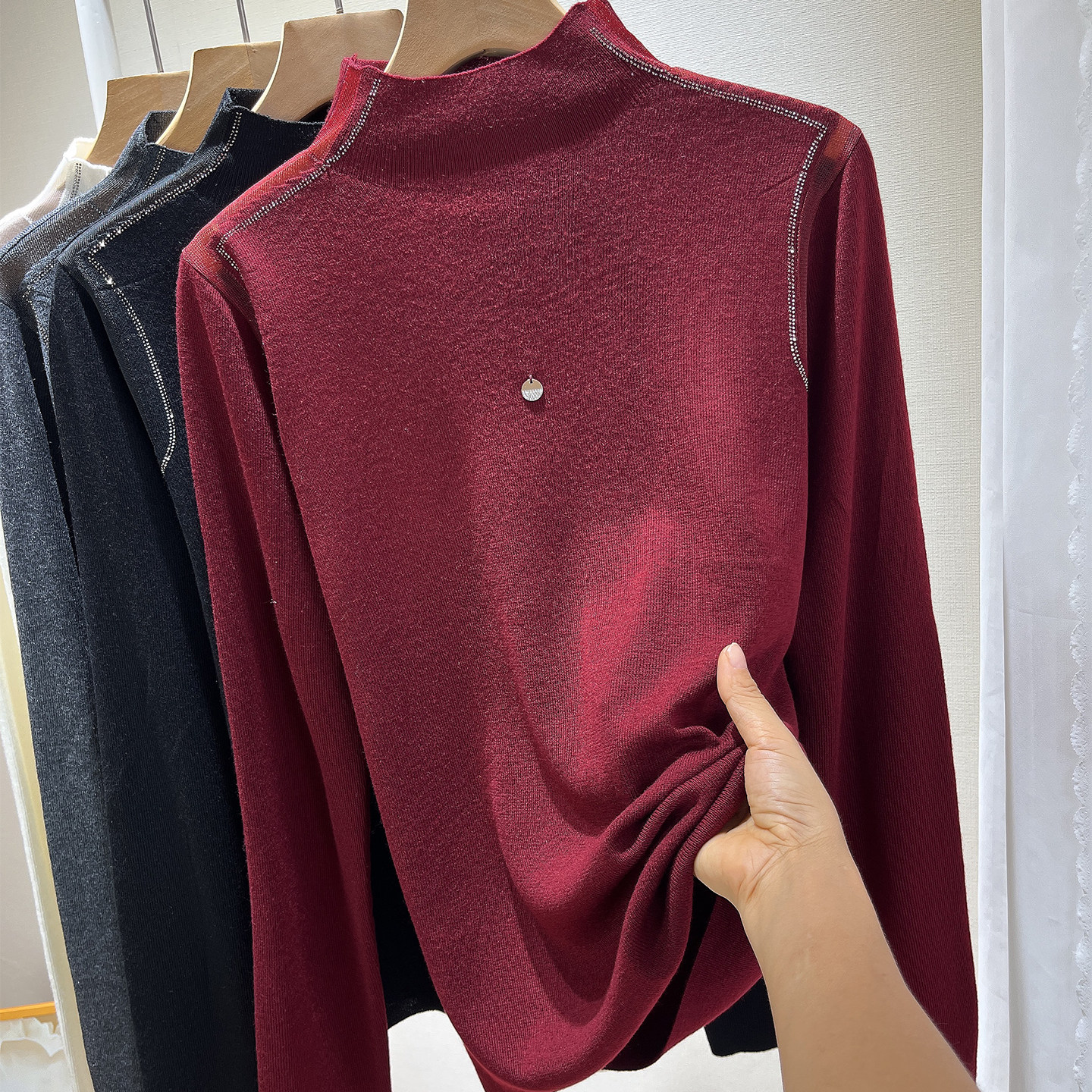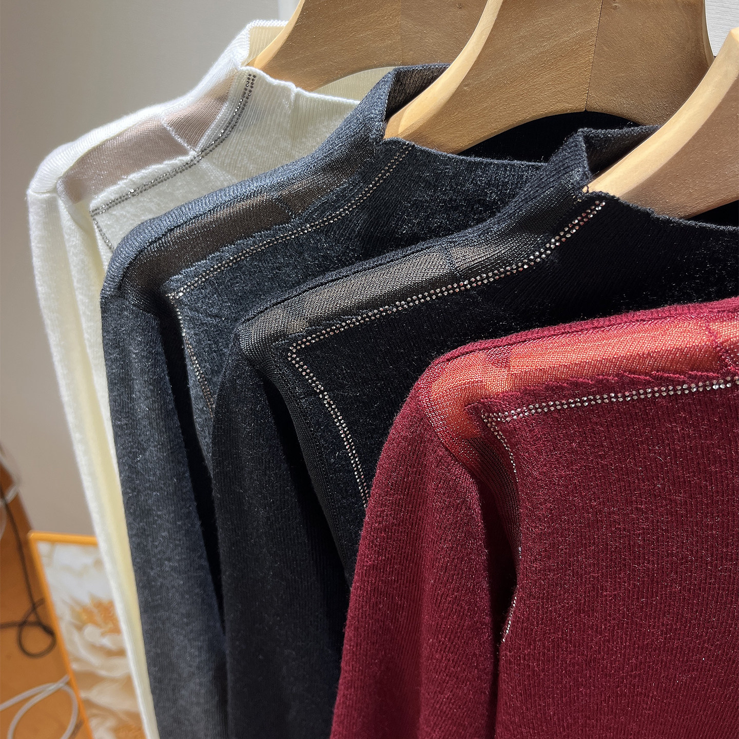 立领重工镶钻修身 细羊毛针织衫 半高领打底衫 女时尚 内搭毛衣 薄款