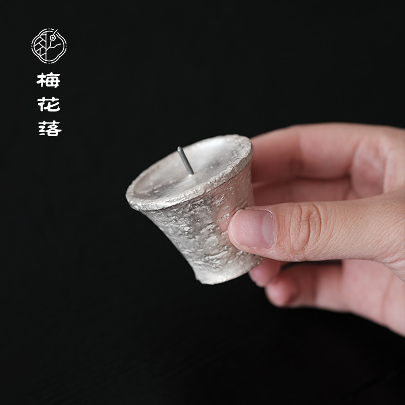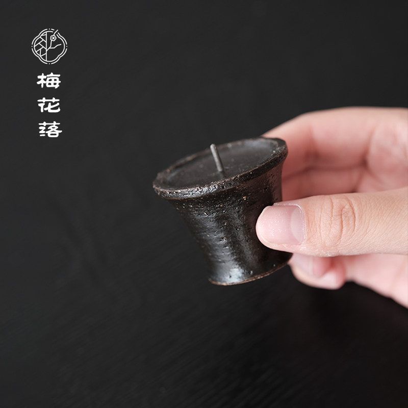 梅花落陶泥烛台金银彩陶瓷蜡烛底座古式 茶道摆件吴一延手作 插扦式由