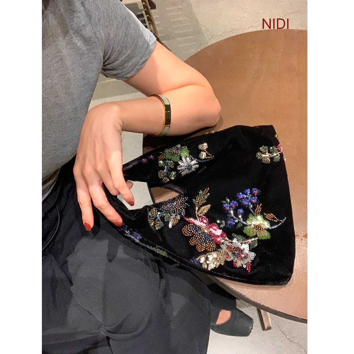 新款 复古钉珠刺绣百搭手拎包 亮片丝绒手提包女士2026年春季 新中式由
