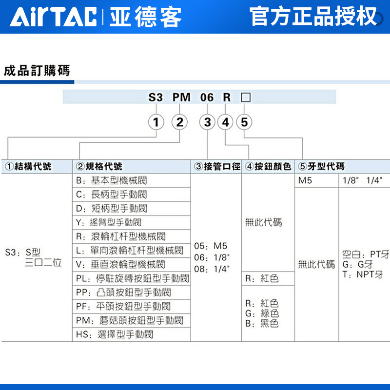 S3HL S3L S3R 08二位三通控制阀 S3V 亚德客机械阀S3B