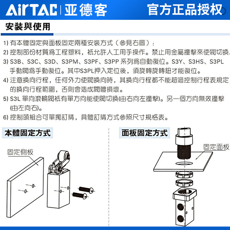 为您提供商品S3HL S3L S3R 08二位三通控制阀 S3V 亚德客机械阀S3B的详细介绍,