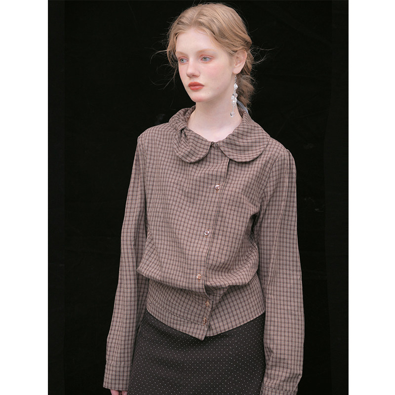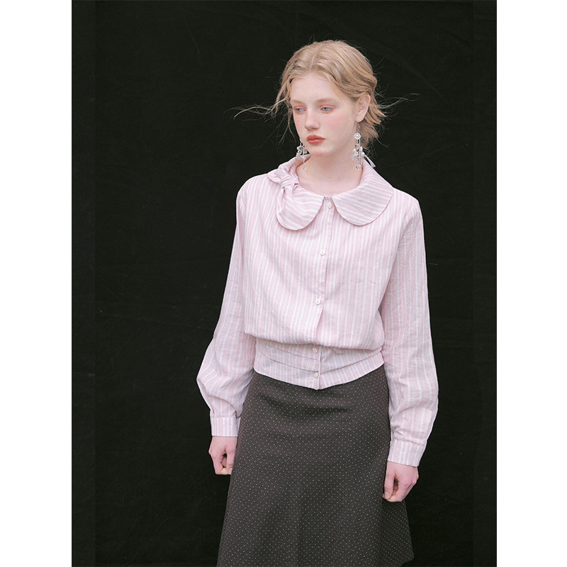 腰封式 俗集原创 2025AW 咖色设计感娃娃领上衣衬衣 减龄粉色