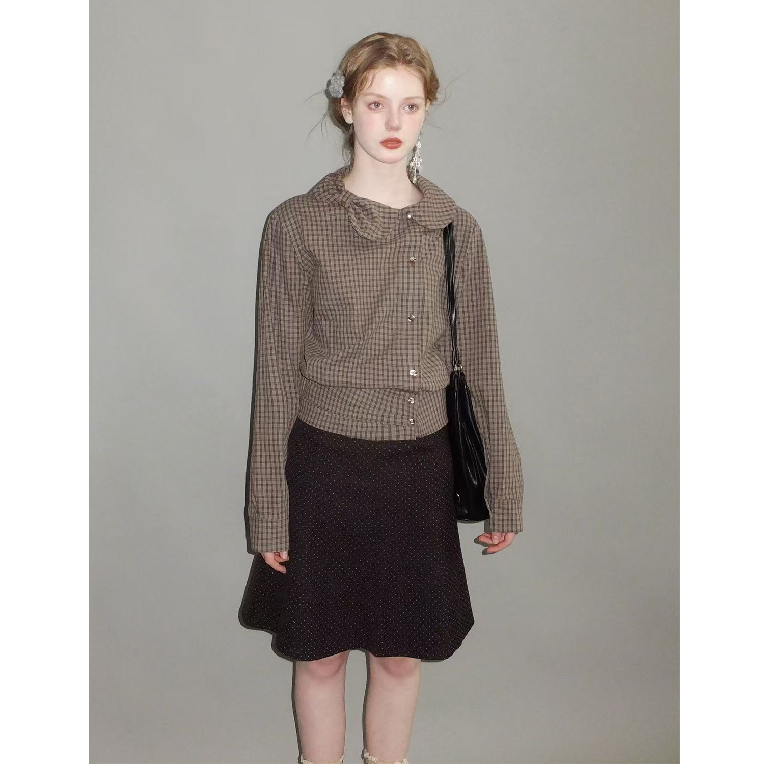 腰封式 俗集原创 2025AW 咖色设计感娃娃领上衣衬衣 减龄粉色由